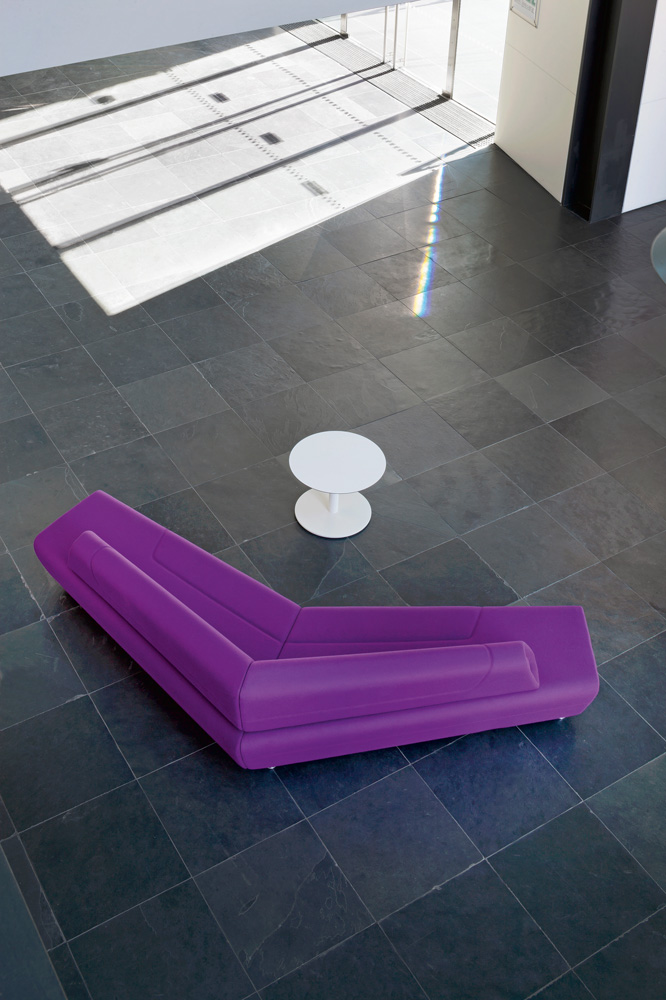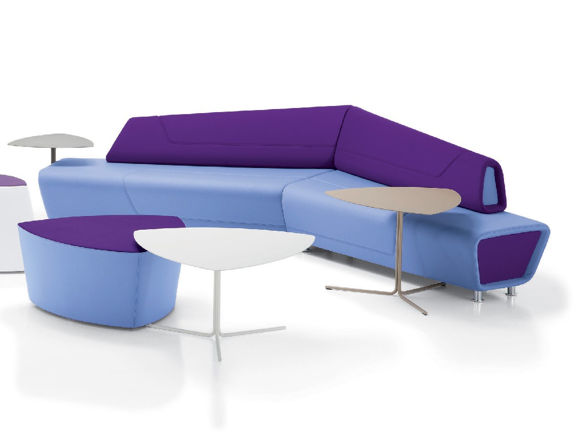 Modular range for waiting, conversation and meeting areas made of various interchangeable units for corner or linear solutions in one-color or bi-color upholstery