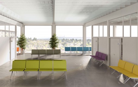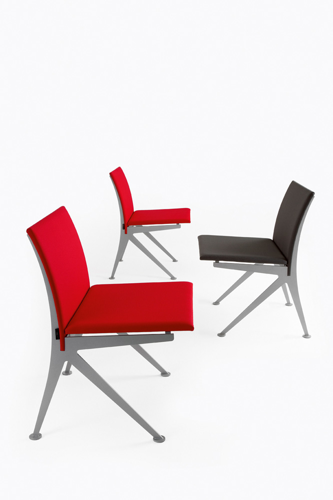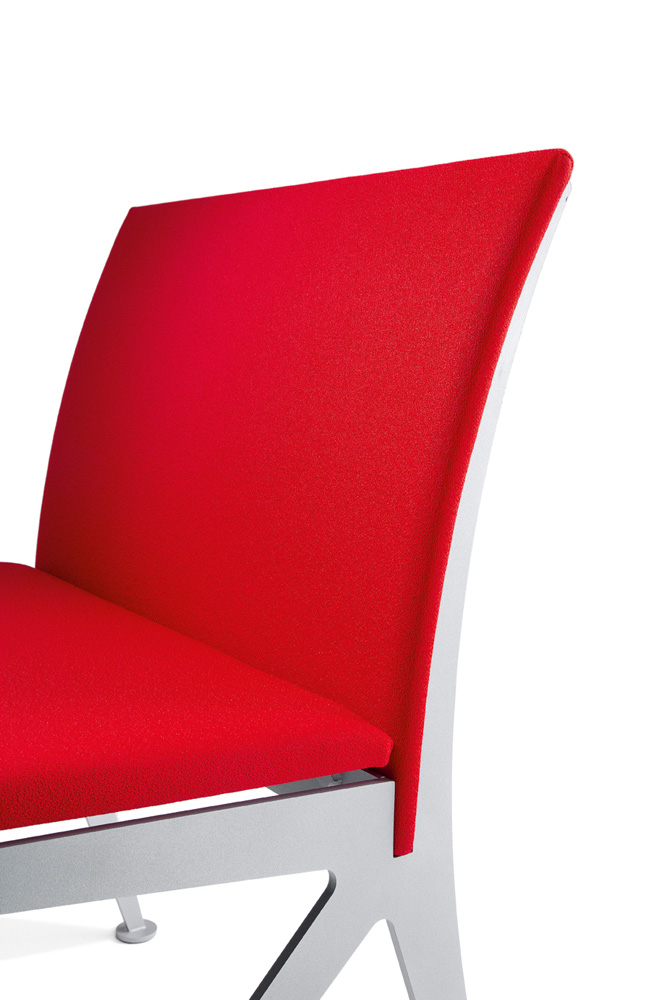 Chair for waiting areas and conference rooms, with aluminium painted steel frame, available in monocolour or bicolor upholstery.