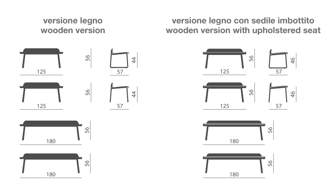 - Steel sled or 4 legs frames, available in aluminium painted, black painted or