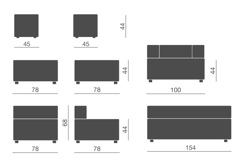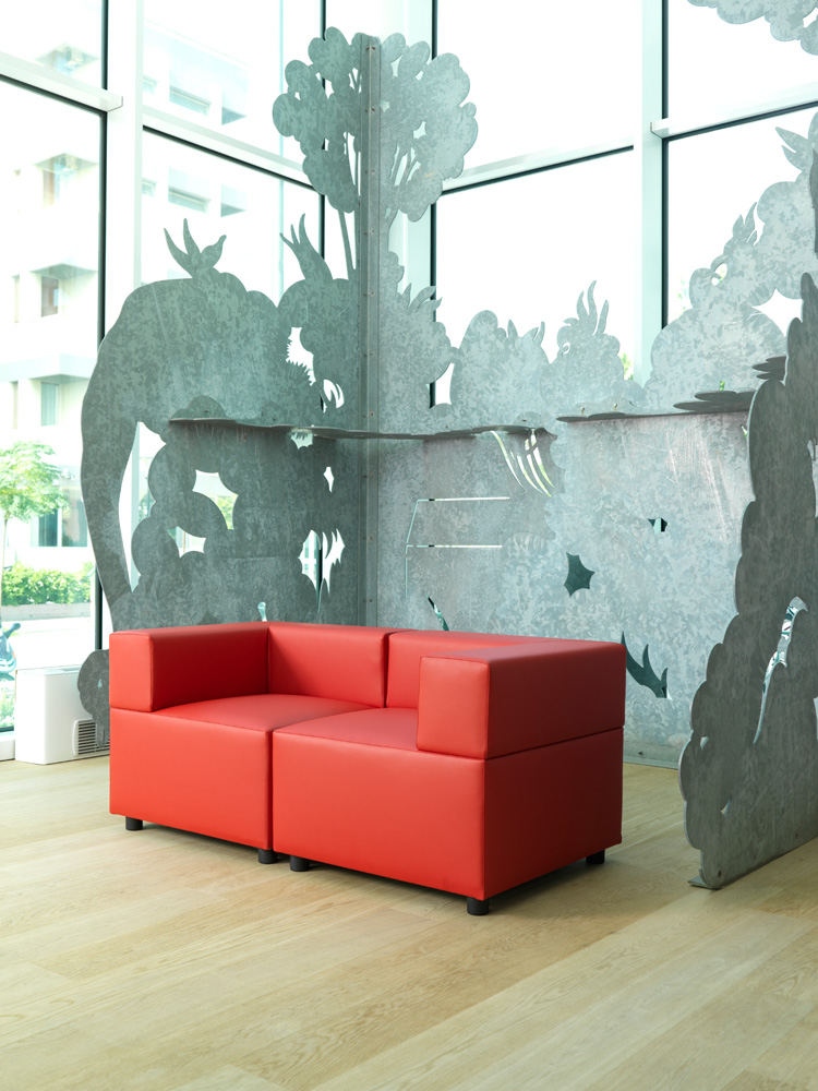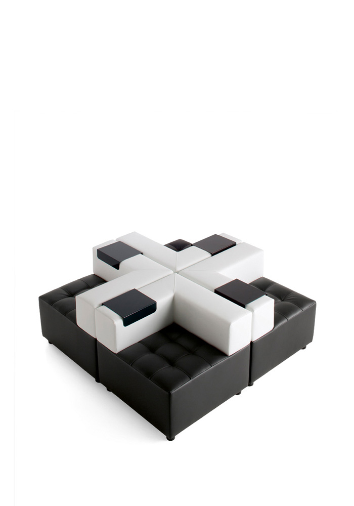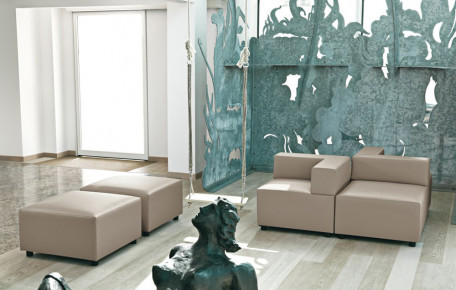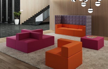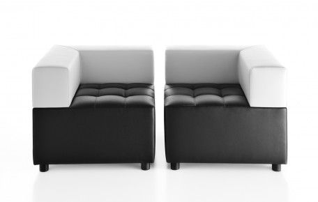 Armchair suitable for waiting rooms, receptions or meeting areas consisting of interchangable modular units.