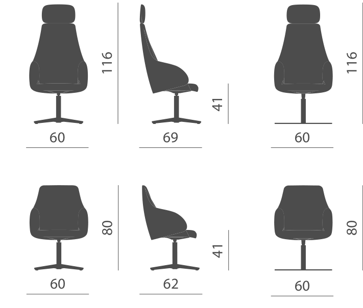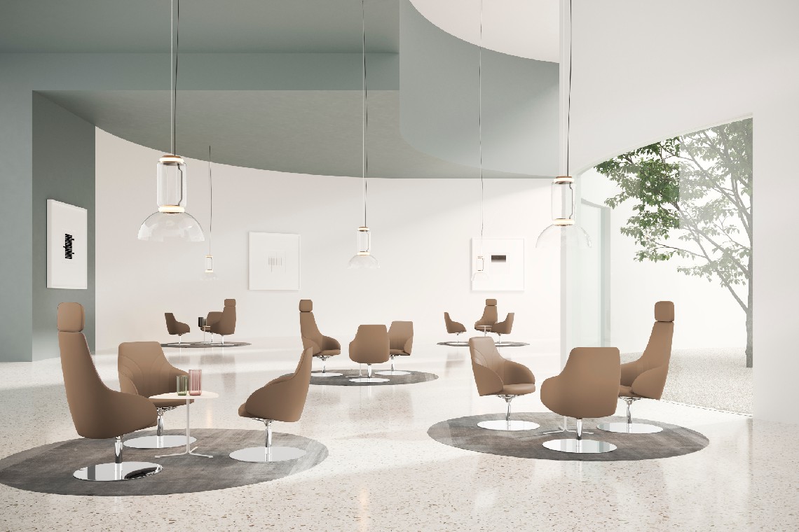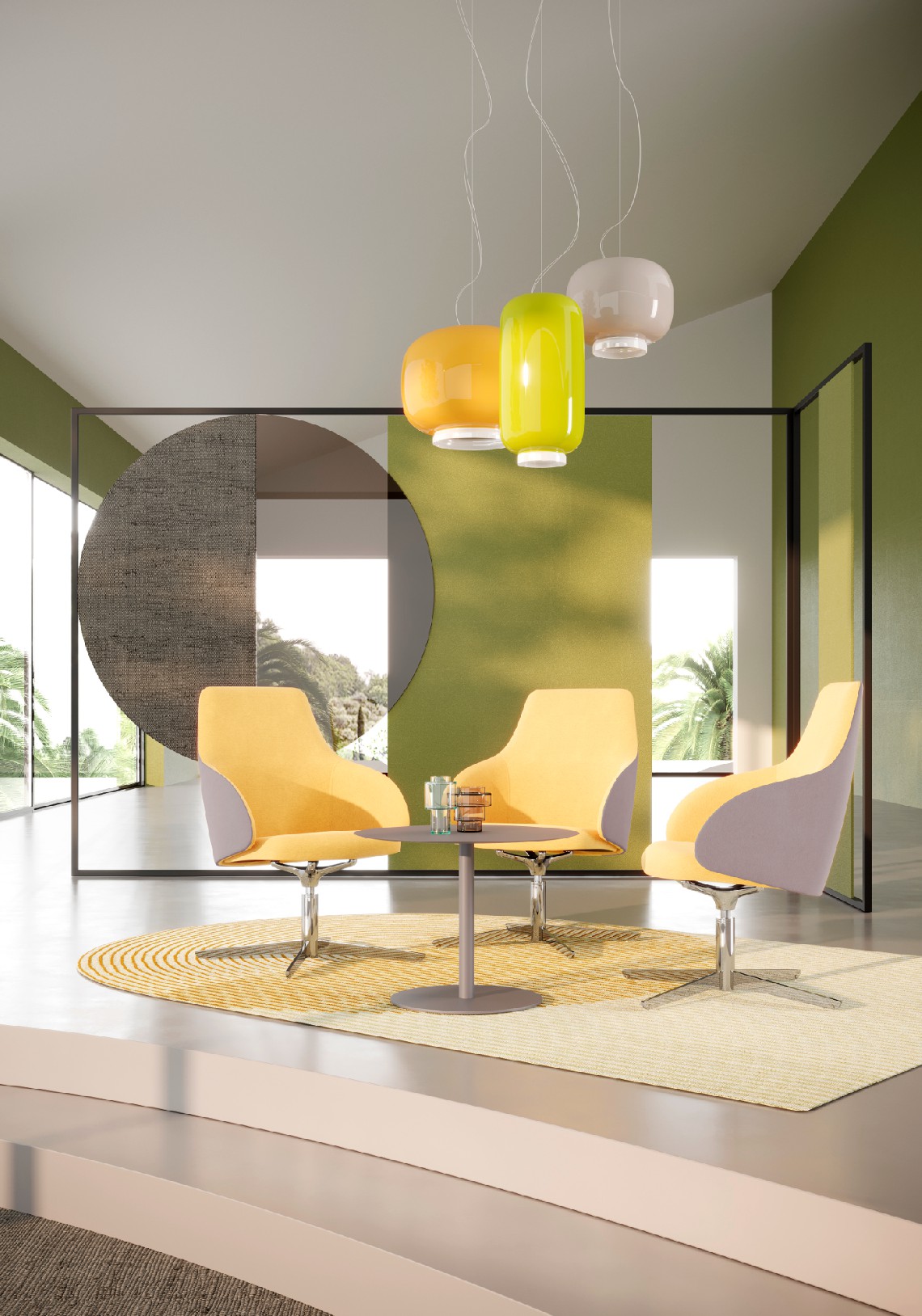 Armchairs for waiting and meeting areas in various dimensions and with different fixed or swivel bases