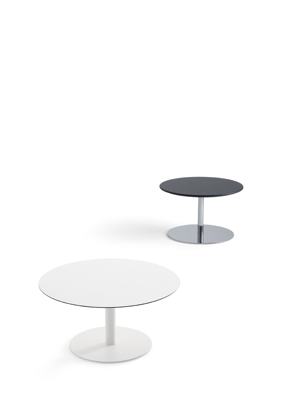 - HPL (High Pressure Laminate) round or square tops with thickness 12 mm in white or black colour