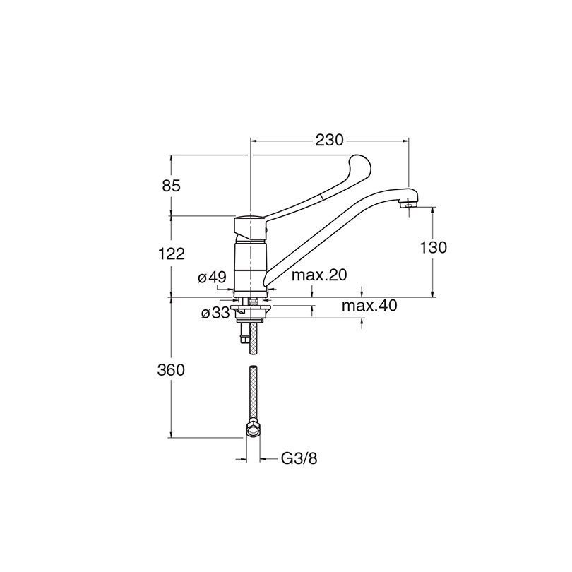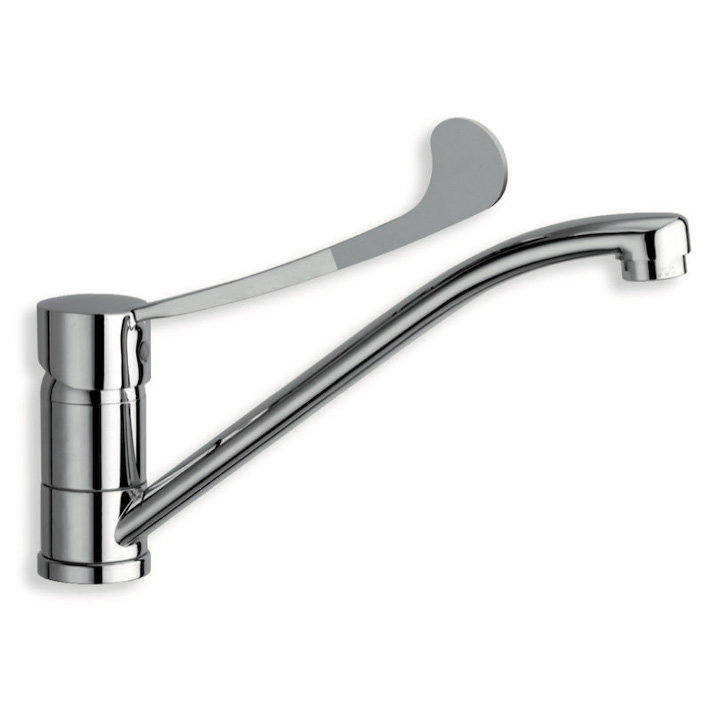 Miscelatore monocomando cucina, bocca orientabile, monoforo da piano, con miscelazione meccanica frontale, leva clinica soft touch, H. H. 122 mm