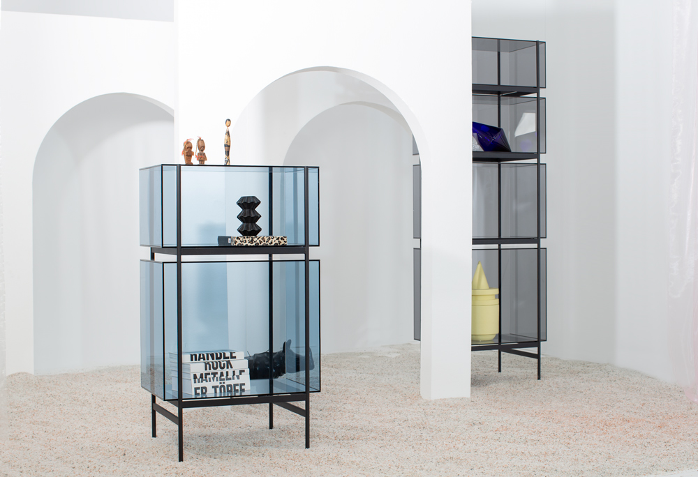 StudioVisser & Meijwaard describe their conception of lyn as a “graphic interplay between glass and the metal frameworks”. The doorless and diverse series of cabinets and high boards are equivalent to the designers’ ambition to rethink established forms, like they did in their past as fashion designers. The reduction to the absolute essential form opens a free interplay of material and colour. Depending on the lighting conditions, the viewer’s perspective and arrangement it casts the utmost of diverse highlights.