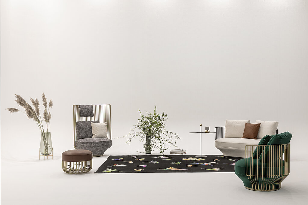 Der Lounge Chair ist das Herzstück der Kollektion: Sein modernes und versatiles Design ist richtungsweisend für die anderen Familienmitglieder. Mühelos greift er die charmanten Elemente jener unvergleichlichen Eleganz auf, die ihre Wurzeln in der Gestaltungstradition Wiens hat. Die filigrane Metallrahmenkonstruktion wirkt trotz gener?ser Dimensionen leicht – sie bildet einen Korb, in dem die gemütlichen Sitz- und Rückenpolster zum Verweilen einladen.