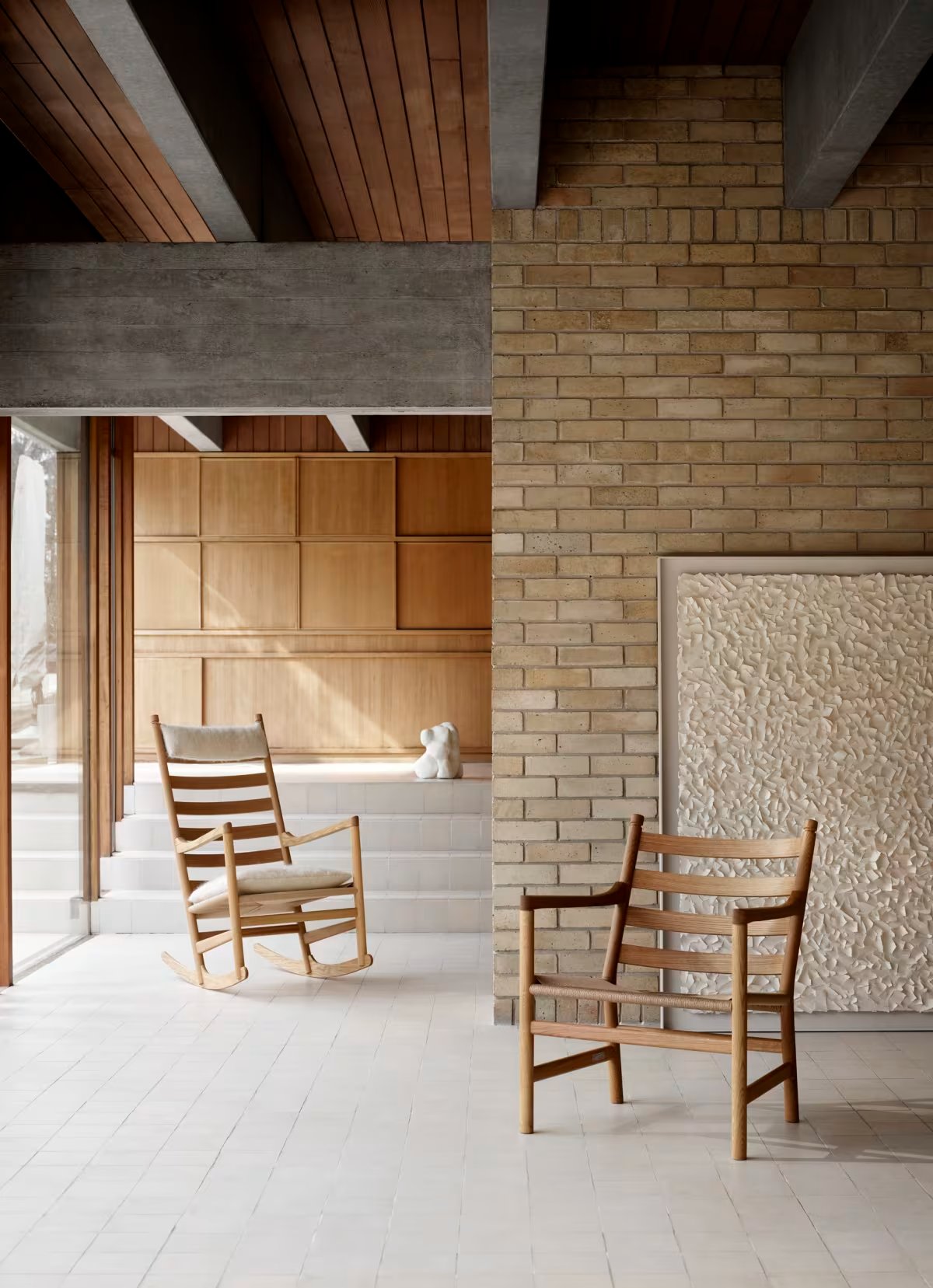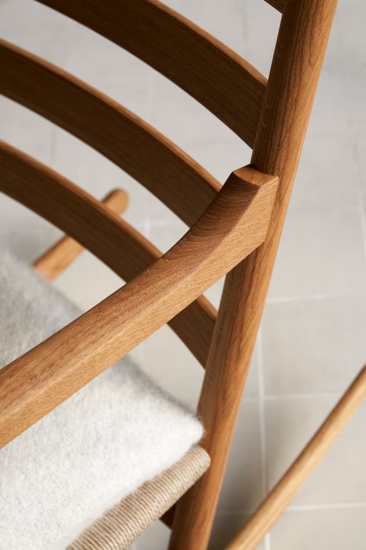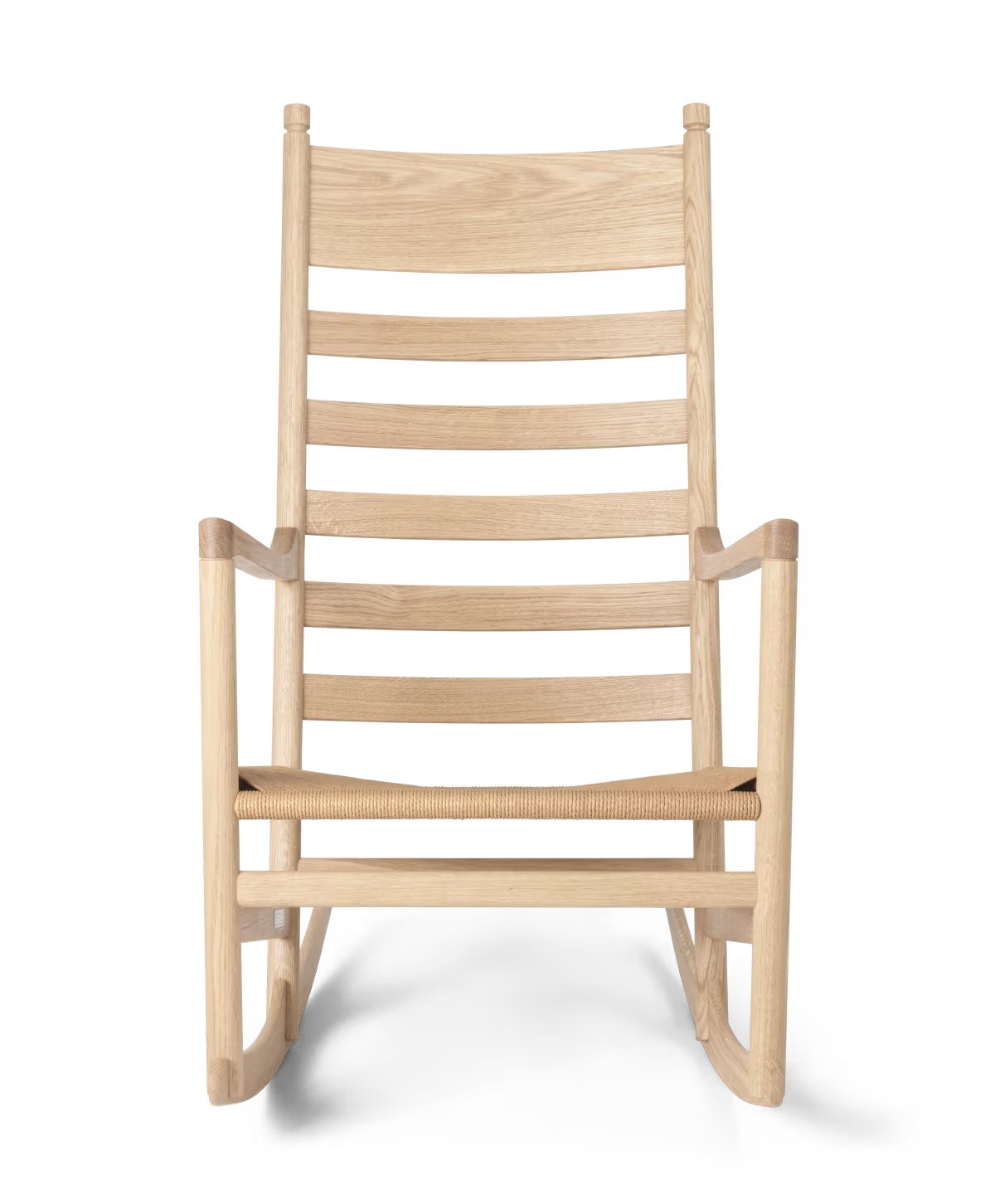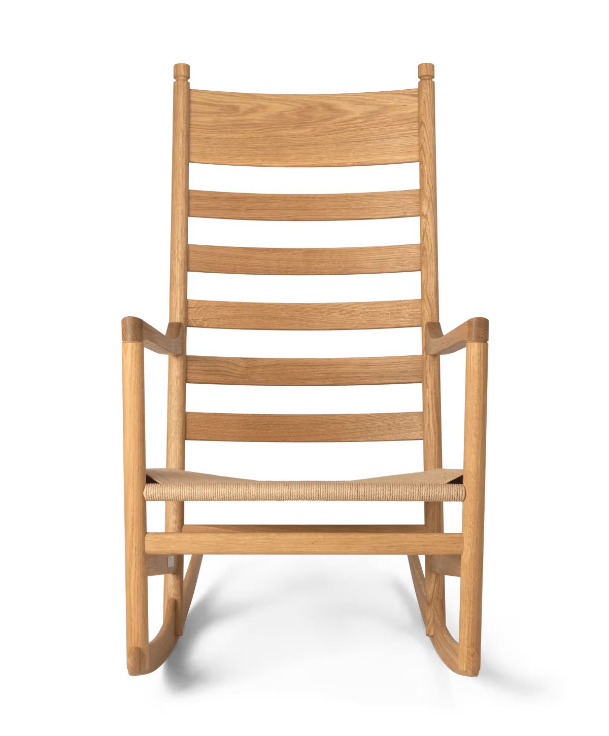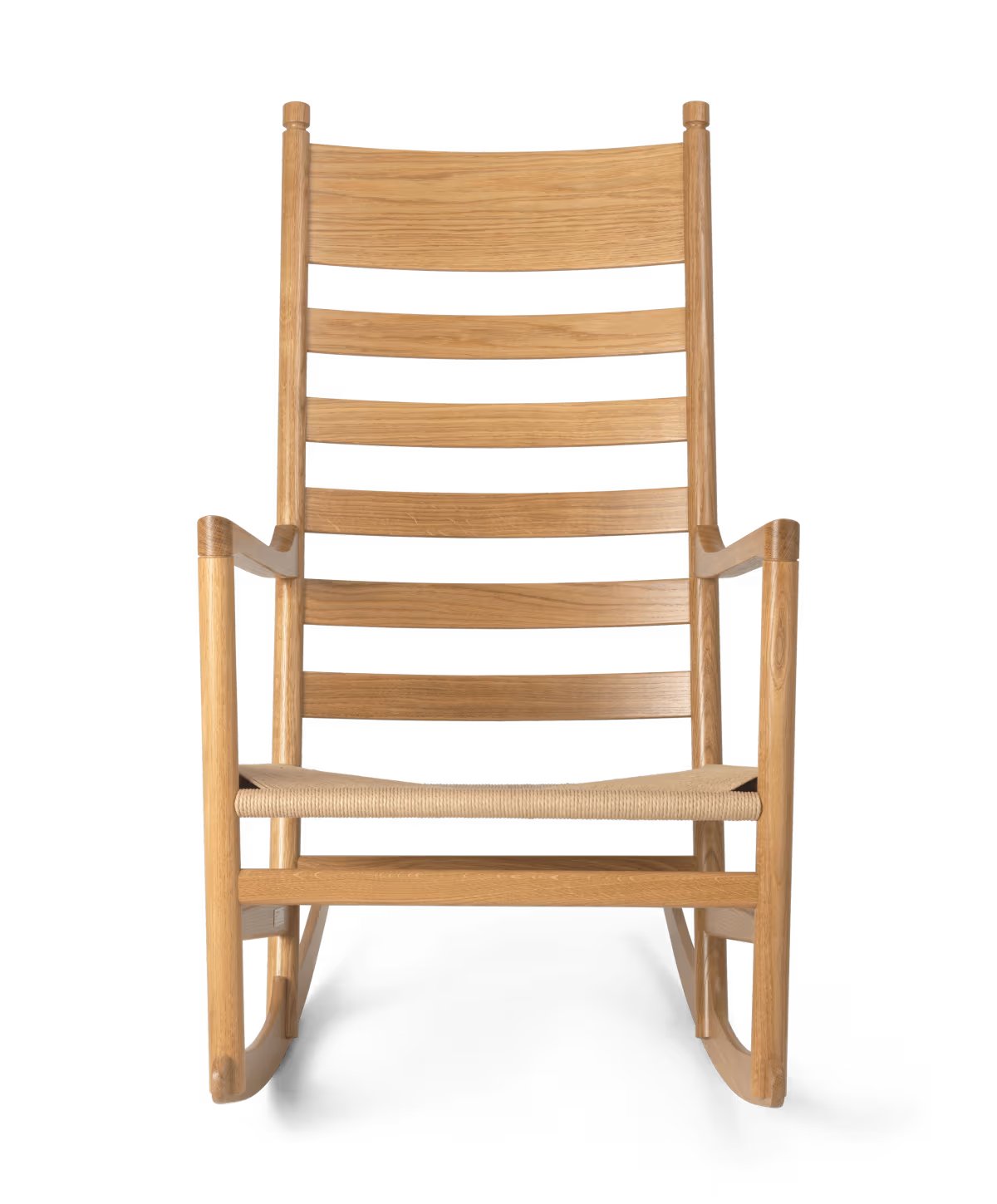 The CH45 Rocking Chair was created for Carl Hansen & S?n in 1965 as part of a more extensive series of furniture, carrying the distinct hallmarks of a Hans J. Wegner design. Wegner’s rocking chair displays a careful balance of poise and elegance with a modern Nordic aesthetic. Available with optional cushions for seat and neck.