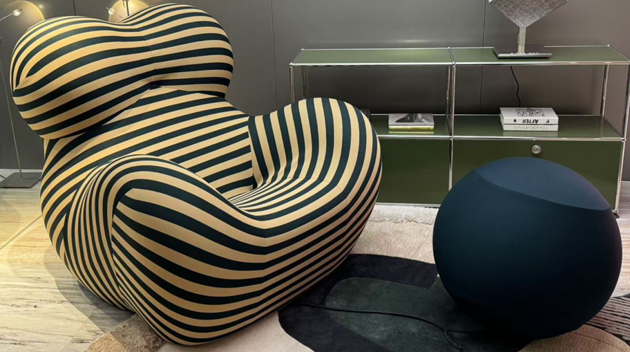 為了慶祝 Gaetano Pesce 設(shè)計(jì)的 Up5 扶手椅配 Up6 腳凳組合問(wèn)世 50 周年,B&B Italia 推出了全新的 純色款式,包括橘紅色、海藍(lán)色、墨綠色、翠綠色和豆蔻棕色。 此外,B&B Italia 還推出了 50 周年特別版的暖米墨綠雙色條紋版本,以此向 1969 年最初推出的顏色版本致敬。