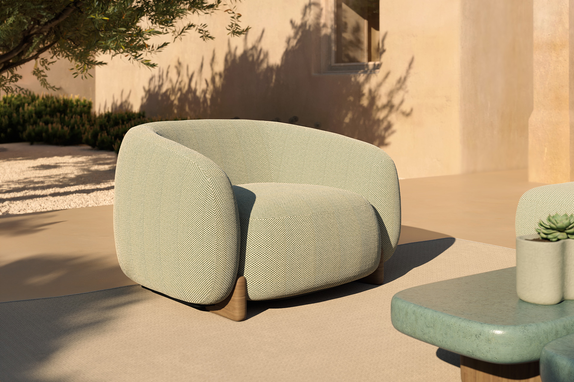 The lounge chair is a true example of Massaud’s excellence in the world of design. In its creation, it fuses the versatility of flexible polyurethane foam with the inherent elegance of iroko wood in its legs. This design integrates the highest quality solutions and materials, adapted to withstand outdoor conditions, without compromising the cosy warmth and comfort expected of an indoor armchair.