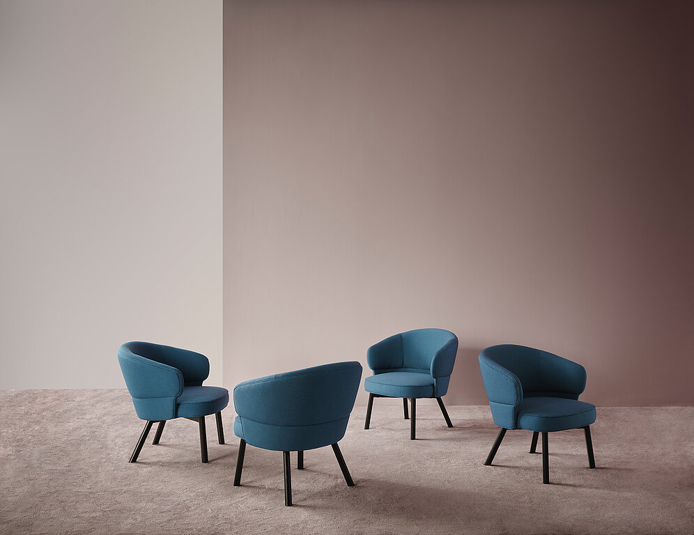 Herkners wohlproportionierte Loungevariante seines Essstuhls Morton spielt seine Vorzüge in allen Bereichen des Wohnens oder Arbeitens aus. Die aufmerksamkeitsstarke Form der Serie das optionale Spiel mit Bezugsmaterialien sowie der hohe Sitzkomfort schienen wie gemacht für den Einsatz abseits des Esstisches.