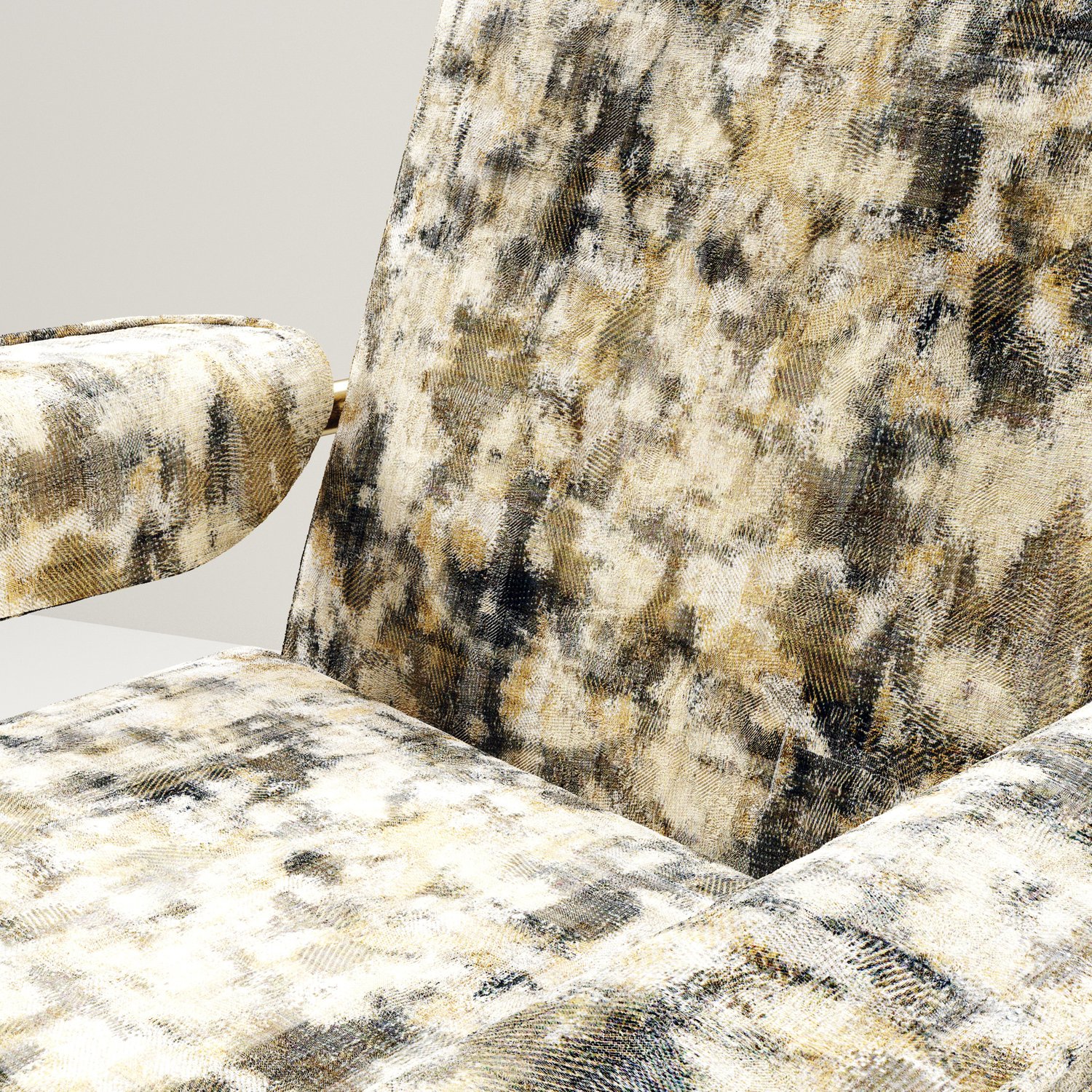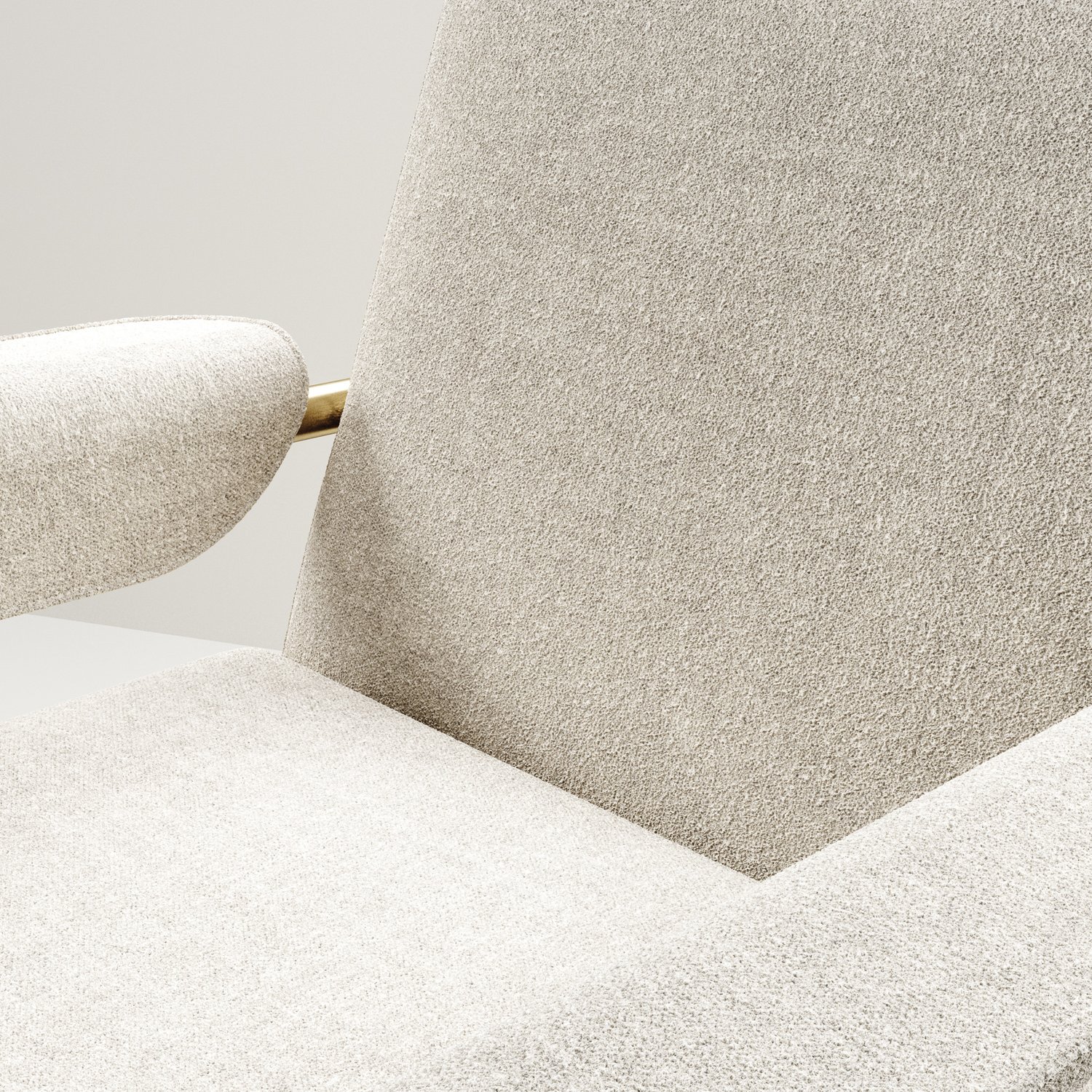 The Ramo armchair by R & Y Augousti is an elegant and versatile piece. The upholstered piece in Pierre Frey fabrics provide comfort while retaining a unique aesthetic with the bronze-patina brass frame and details. Part of the Ramo Seating Series.