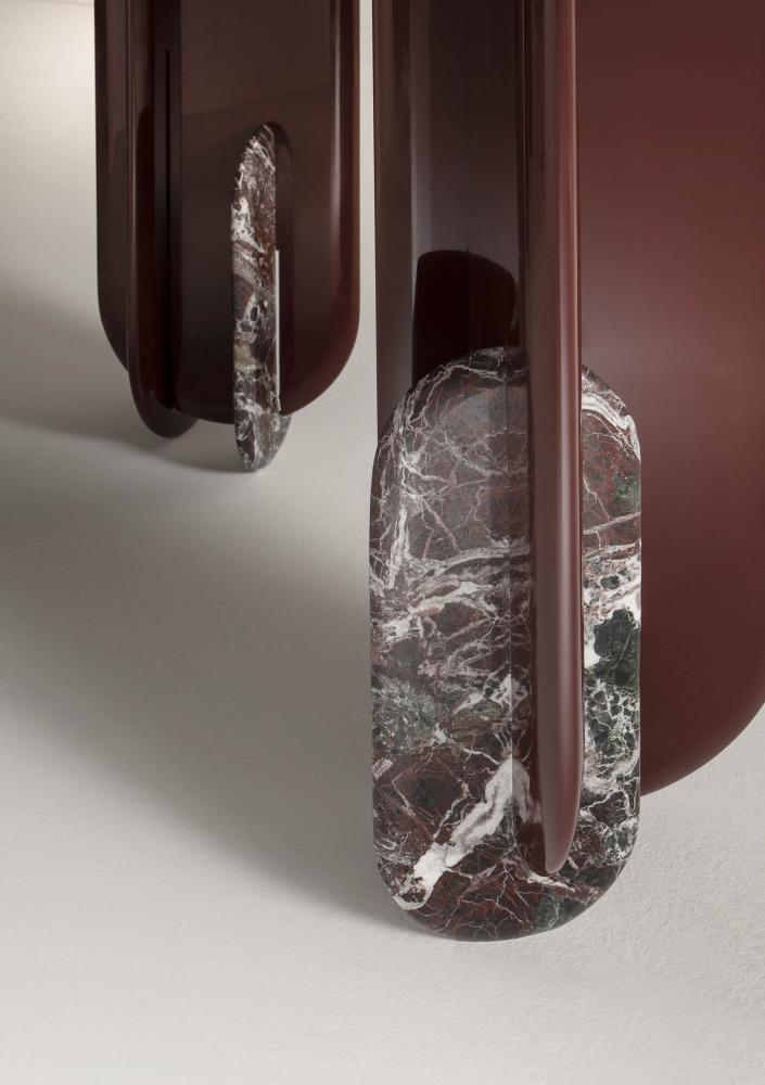 An extremely modern design that wants to defy the force of gravity thanks to a surprising and delicate suspension and lightness effect given by the unusual shape of the legs and the always odd number of them.