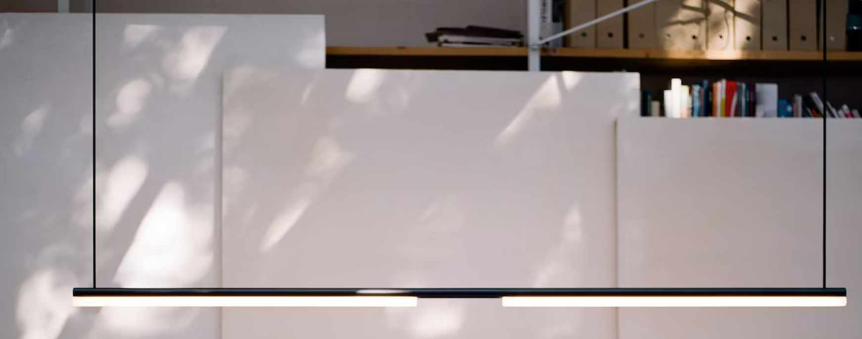 This collection of fixtures uses the standard unit of the light tube as a measure. Through the alternation of 1m and 0.5m modules, it creates a rhythmic language of recording space. The designs evolve as a parallel progression of rods, combining five variations of standard linear LED bulbs and metal tubes of the same diameter. With this series, Michael Anastassiades expands the compositional possibilities of some of the most structural elements of lighting, engaging the viewer in a rigorous yet playful exercise in measuring.