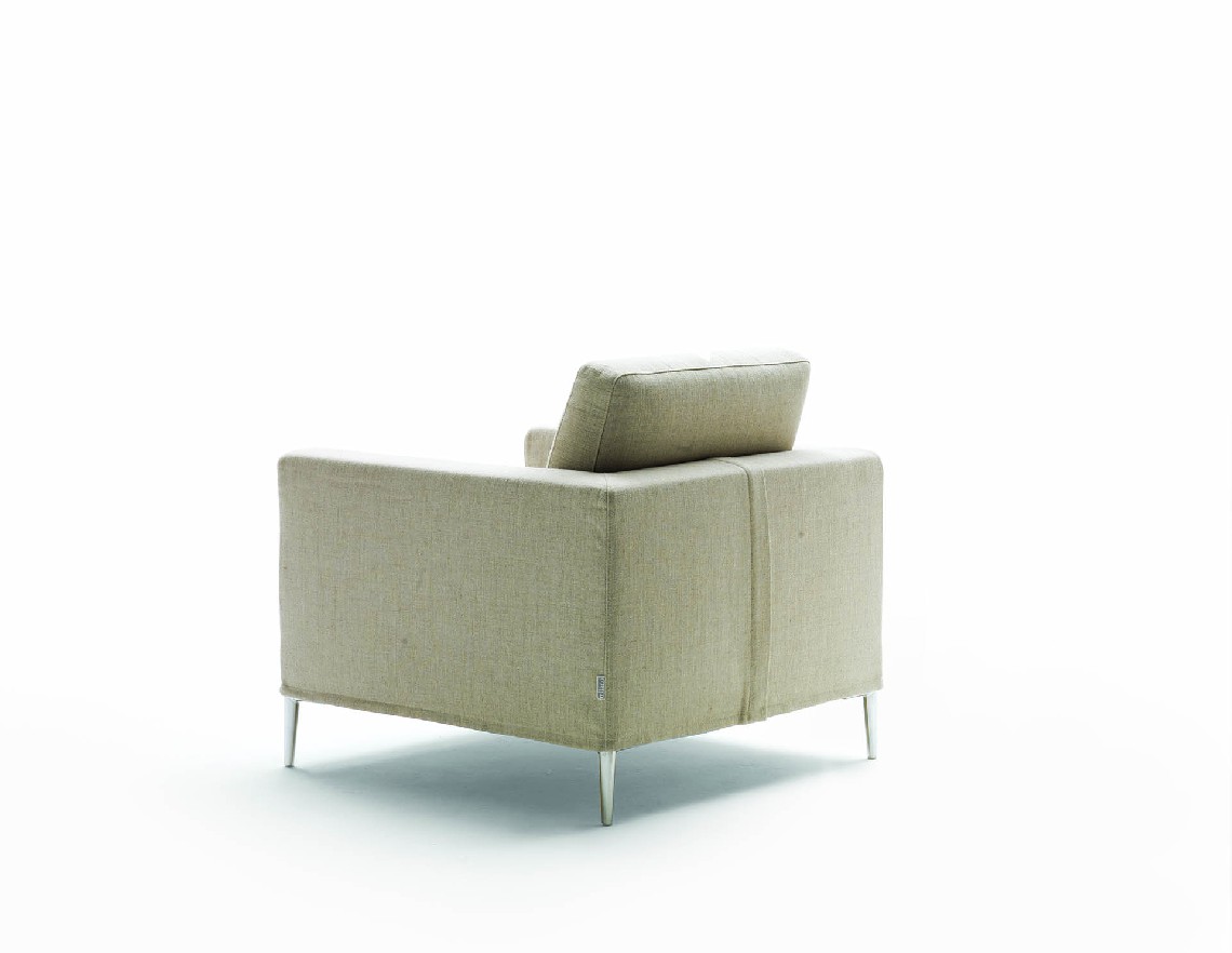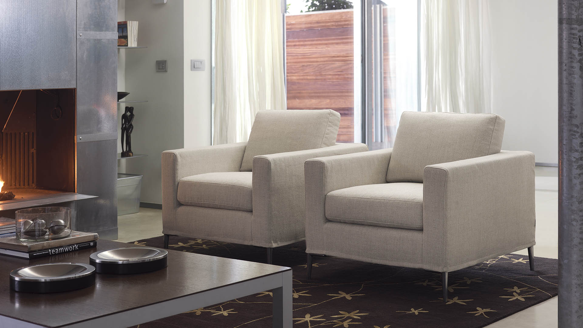 Extremely comfortable, light and versatile, Greta and Grace can find their place in any modern setting, thanks to their simple design and to the choice between wooden and chromed legs. The cover is completely removable and washable according to the fabric chosen.