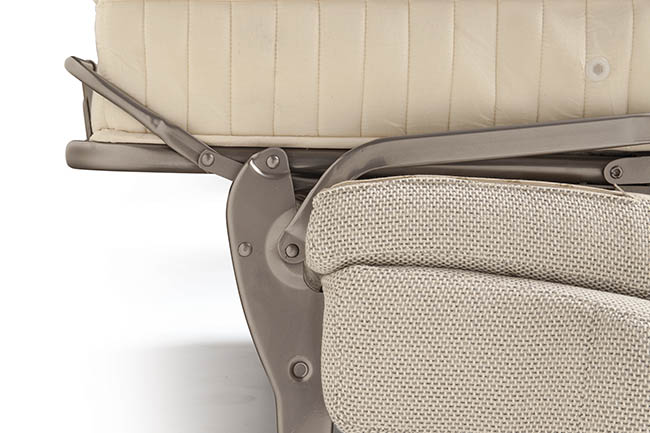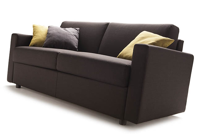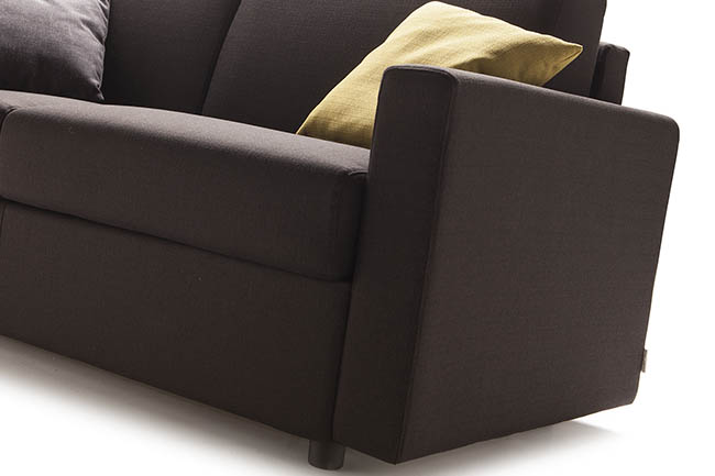 Jan is a sofa whose stylish bring sophistication to a modern setting. The cover is completely removable and washable according to the fabric chosen. By simply rotating the back, without removing any of the cushions, it converts into a bed with a 17/18 cm mattress. Pillow storage is available in the backrest.