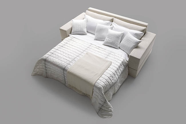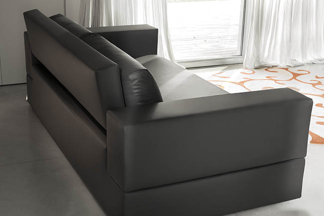 With its simple lines, Jaco satisfies all requirements of modern design and comfort. Its upholstered backrest can be rotated to increase the depth of the seat. With one simple action, Jaco transforms into a bed with a 200 cm. long mattress that is suitable for every day use. The covers are fully removable and can be washed or drycleaned depending on the selected fabric. Jaco is also available as a fixed sofa that can be completely dismantled for easy delivery.