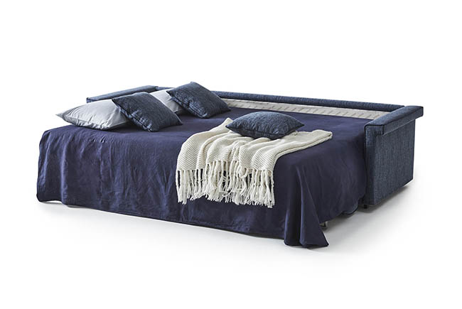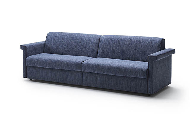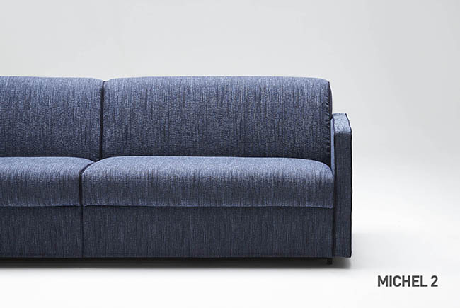 With its simple lines MICHEL meet any design requirements. By simply rotating the back, without removing any of the cushions, MICHEL converts into a double bed for sleeping horizontally instead of vertically. The covers are fully removable and can be washed or drycleaned depending on the selected fabric. MICHEL is also available as a fixed sofa that can be completely disassembled for easy delivery.
