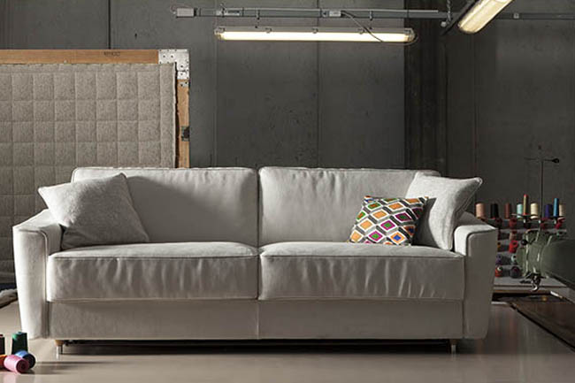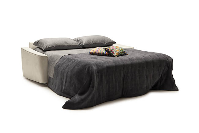 Petrucciani fits with style to all environments. By simply rotating the back, without removing any of the cushions, Petrucciani converts into a conventional bed with a 195 cm. mattress. The cover is completely removable and washable according to the fabric chosen. Petrucciani is also available as a sofa and can be completely disassembled for easy delivery.