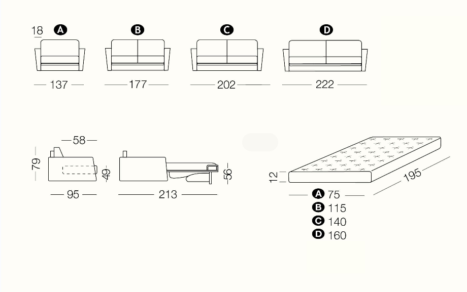 Retrohs fits with style to all environments. By simply rotating the back, without removing any of the cushions, Retrohs converts into a conventional bed with a 195 cm. mattress. The cover is completely removable and washable according to the fabric chosen. Retrohs is also available as a sofa and can be completely disassembled for easy delivery.