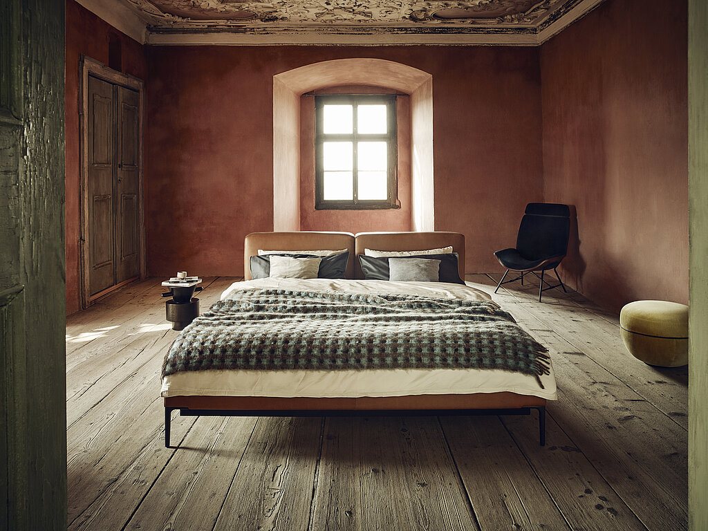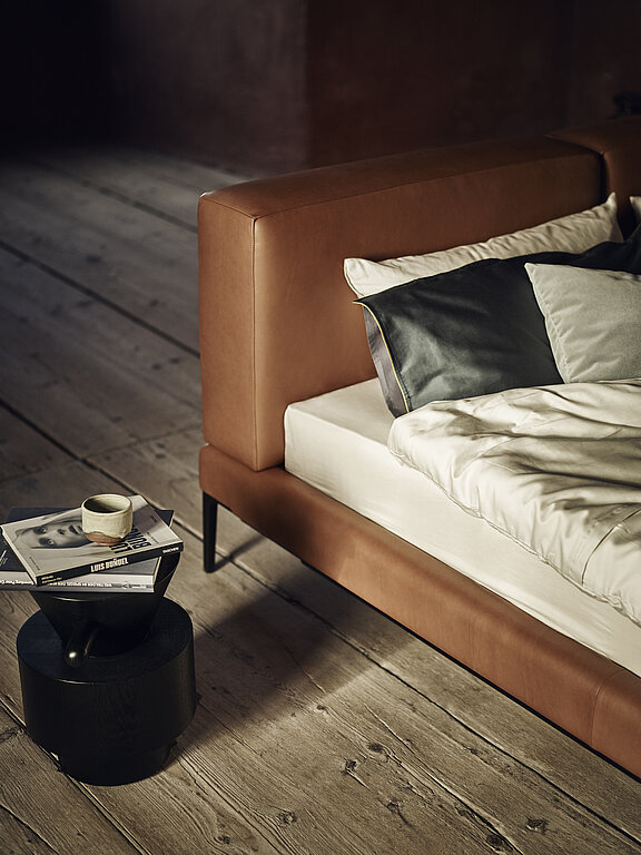 Schlicht und elegant eignet sich dieses Bett ganz besonders als minimalistischer Tr?ger für bequemste Wittmann Schlafsysteme. Das zweigeteilte Kopfteil spendet Gemütlichkeit, durch die reduzierte H?he eignet sich JOYCE CUSHION auch für kleinste Schlafr?ume.