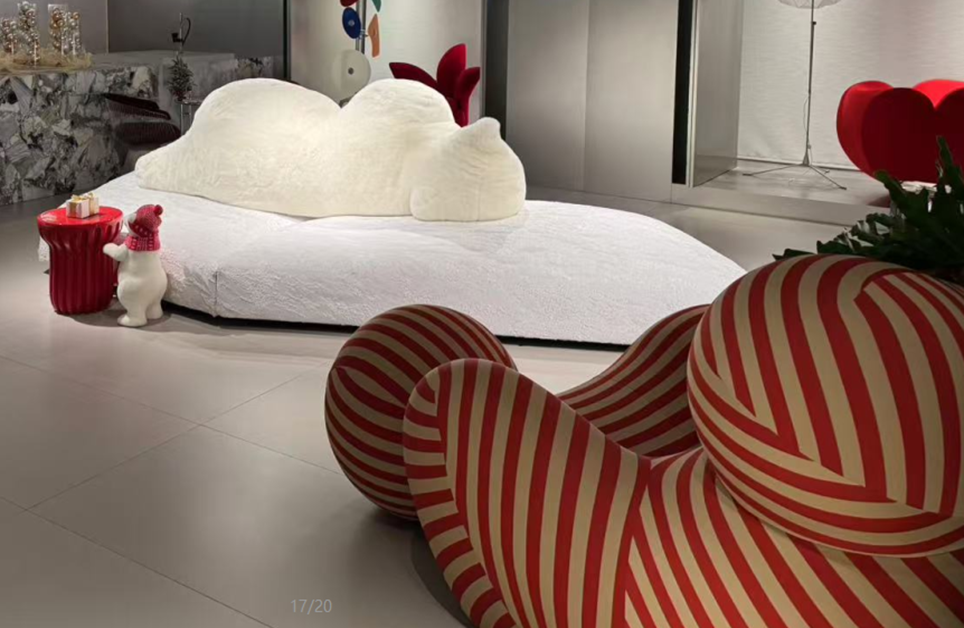 La base è imbottita di Gellyfoam? e piuma, rivestita di un tessuto esclusivo con una texture che ricorda gli strati del ghiaccio. Lo schienale è morbido, realizzato in fibra di poliestere e rivestito di pelliccia ecologica.