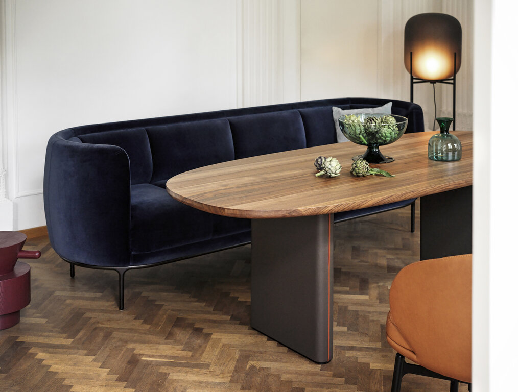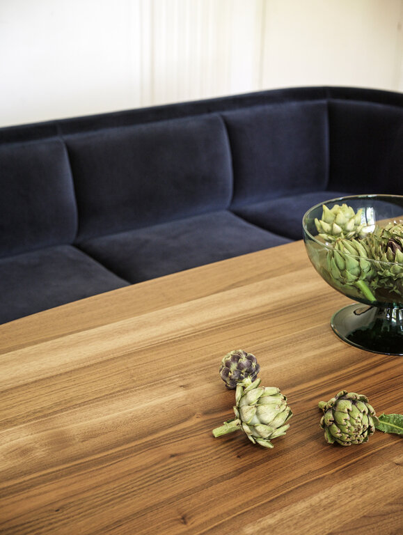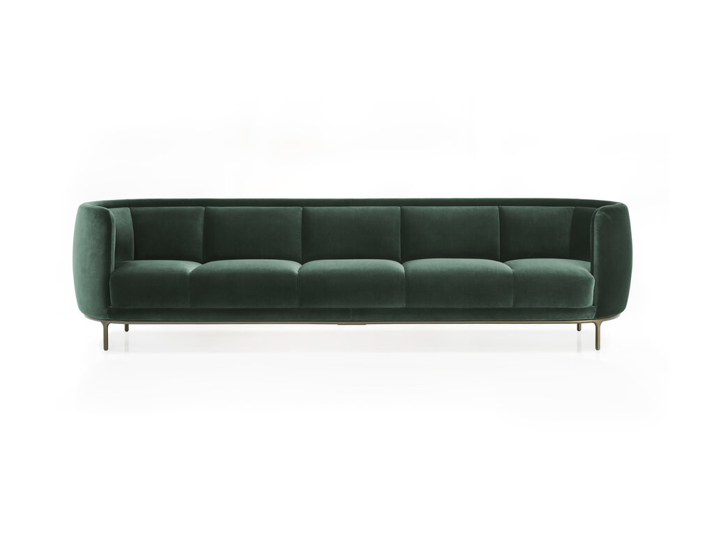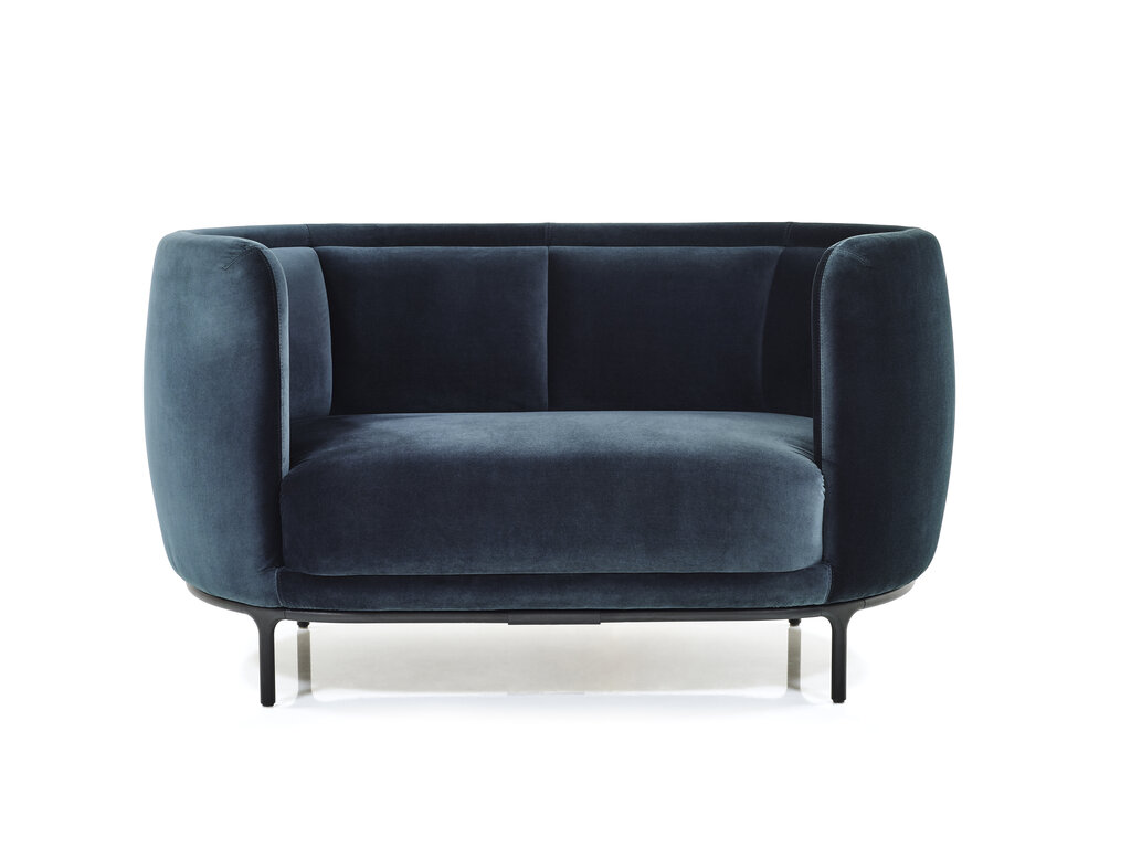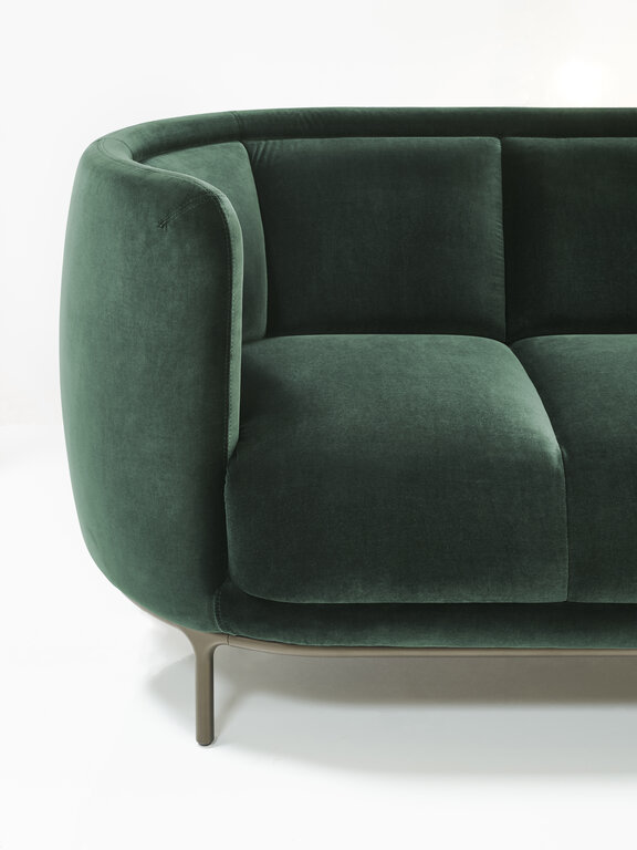 Drehung, Wende, Rückkehr – dies sind die Bedeutungen des spanischen Wortes Vuelta. Spielerisch dreht sich die Rückenlehne um die Ecke, wird zur Armlehne, setzt sich fort um den Sitzenden - oder Liegenden - zu umschlie?en, wie in einer Umarmung. Die besondere Form wird durch handwerklich perfekt verarbeitete Nahtbilder gegliedert, wie eine Reminiszenz an Josef Hoffmann.