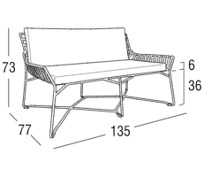 Divano in acciaio 304 verniciato a polveri, intrecciato con Flat Trendyrope. Un divano accogliente, dove la particolare geometria dello schienale si coniuga perfettamente al desiderio di comfort,  creando un angolo per vivere momenti di relax. Ottimo per arredare terrazzi e patio, dona forte personalità anche alle zone living interne. Ideale per arredamenti residenziali e contract.
