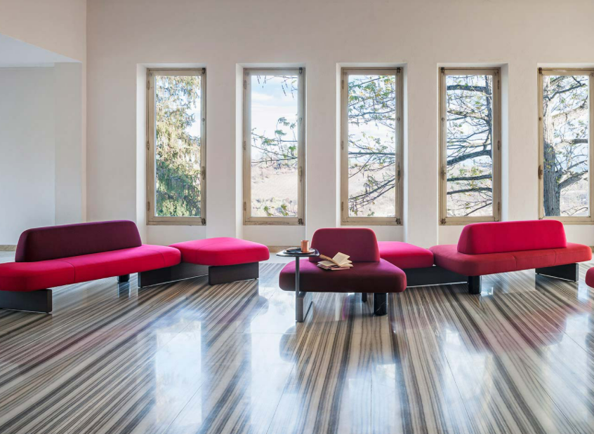 A distinctive palette that perfectly enhances the design of the product, conceived to colour the entire composition in a single tone or build a stylistic dialogue between the modules dressed in the different colours. The proposal celebrates Le Mura modular sofa and confirms the care for upholstery that Tacchini has been pursuing for long time.
