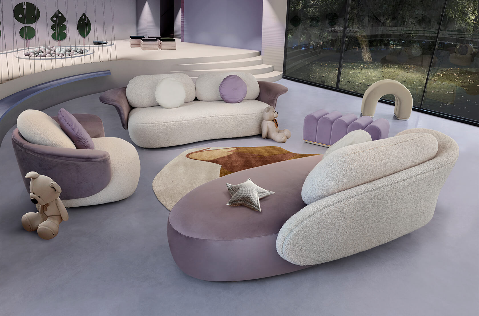 The Callanish Standing Stones on the Isle of Lewis are one of Scotland's oldest and most mystical wonders, and they inspired Merida's ring of stones in “Brave”. Circu took on this inspiration as well, shaping this piece of upholstery like rocks and natural formations. A contemporary item, Lewis Two Seat Sofa, uses its fluidity to transpire warmth and comfort, using two very distinct fabrics: The seating and back in a soft boucle and its back frame a delicate velvet. The details of the gold plated feet, add a little touch of luxury but mysticismand magic as well.