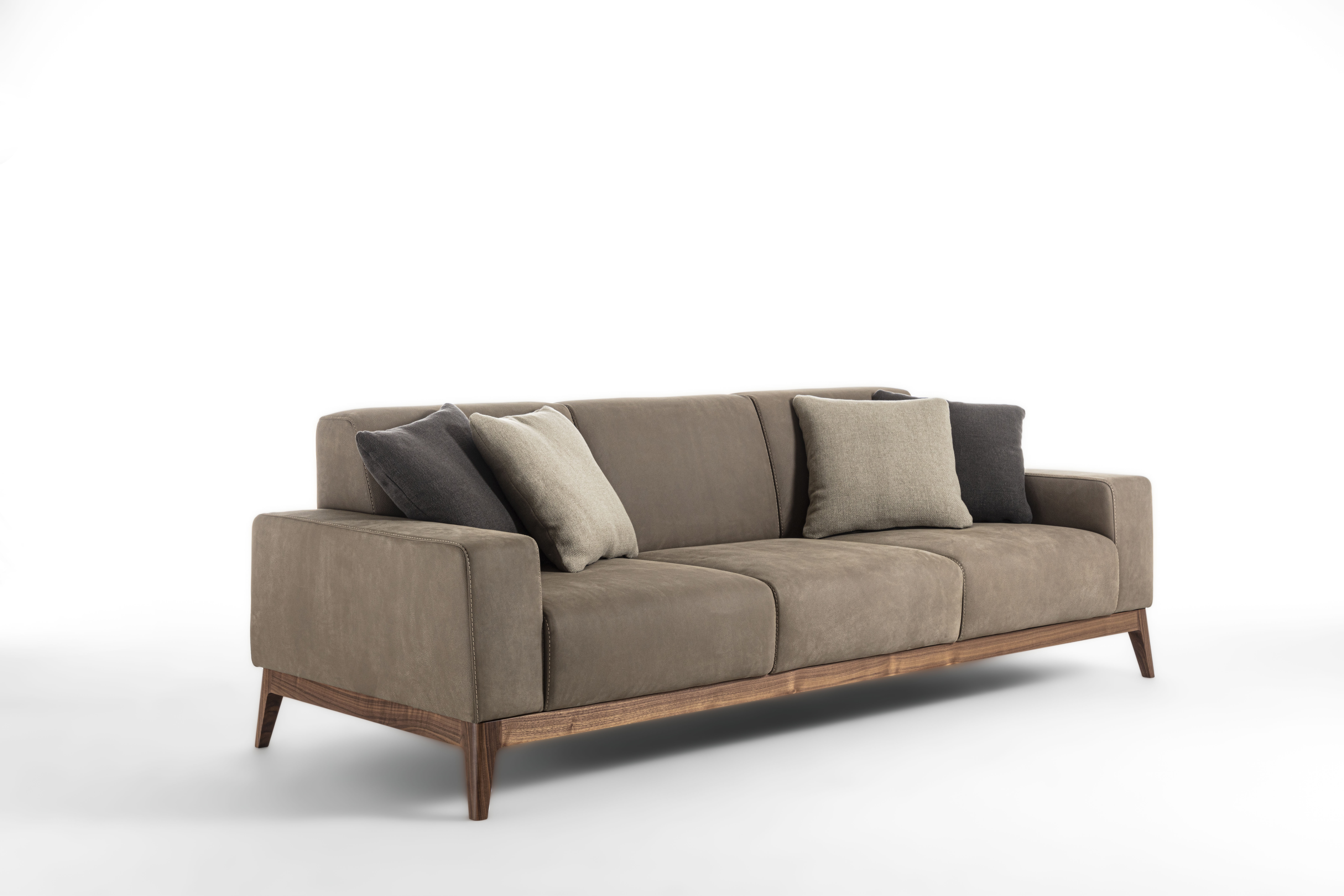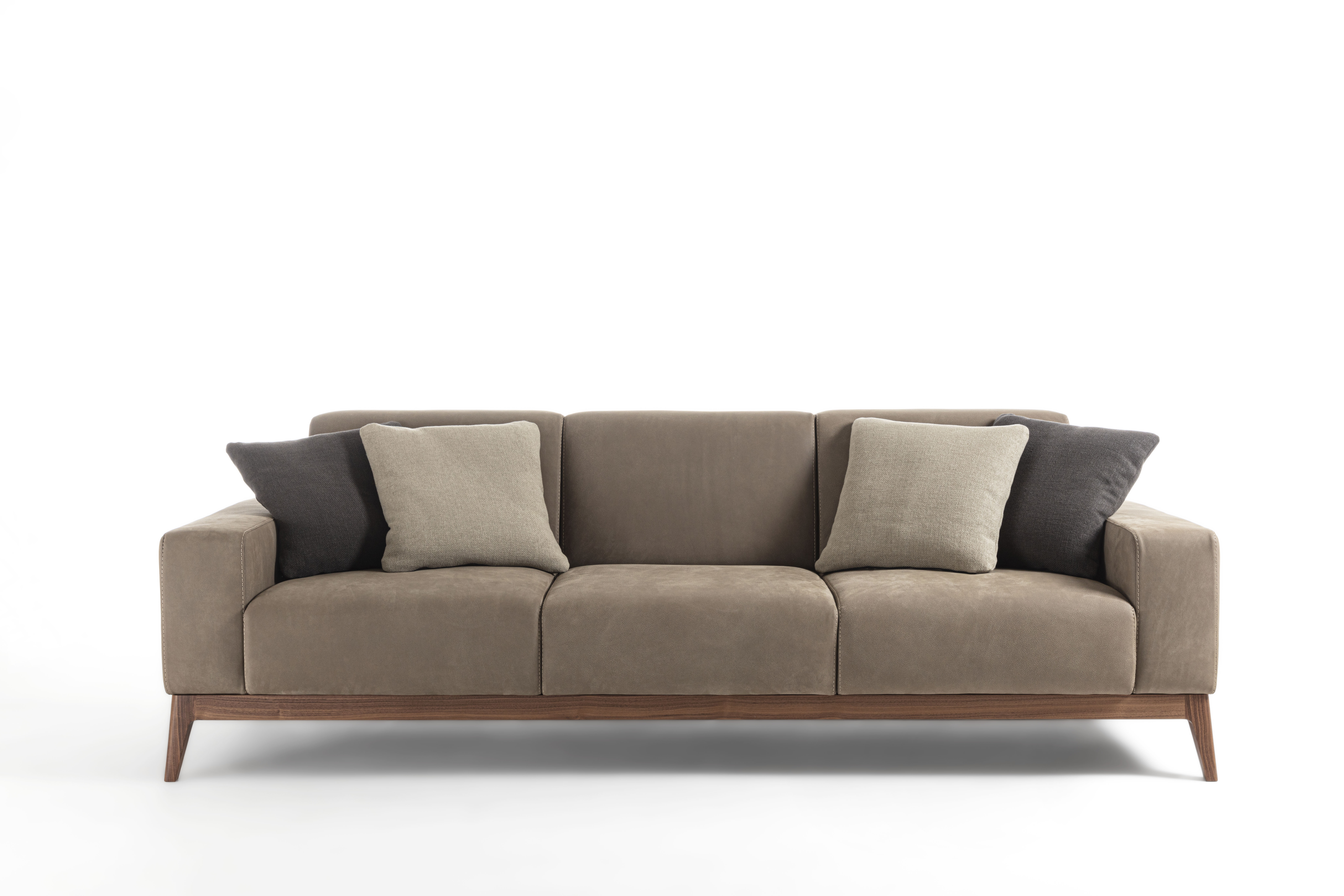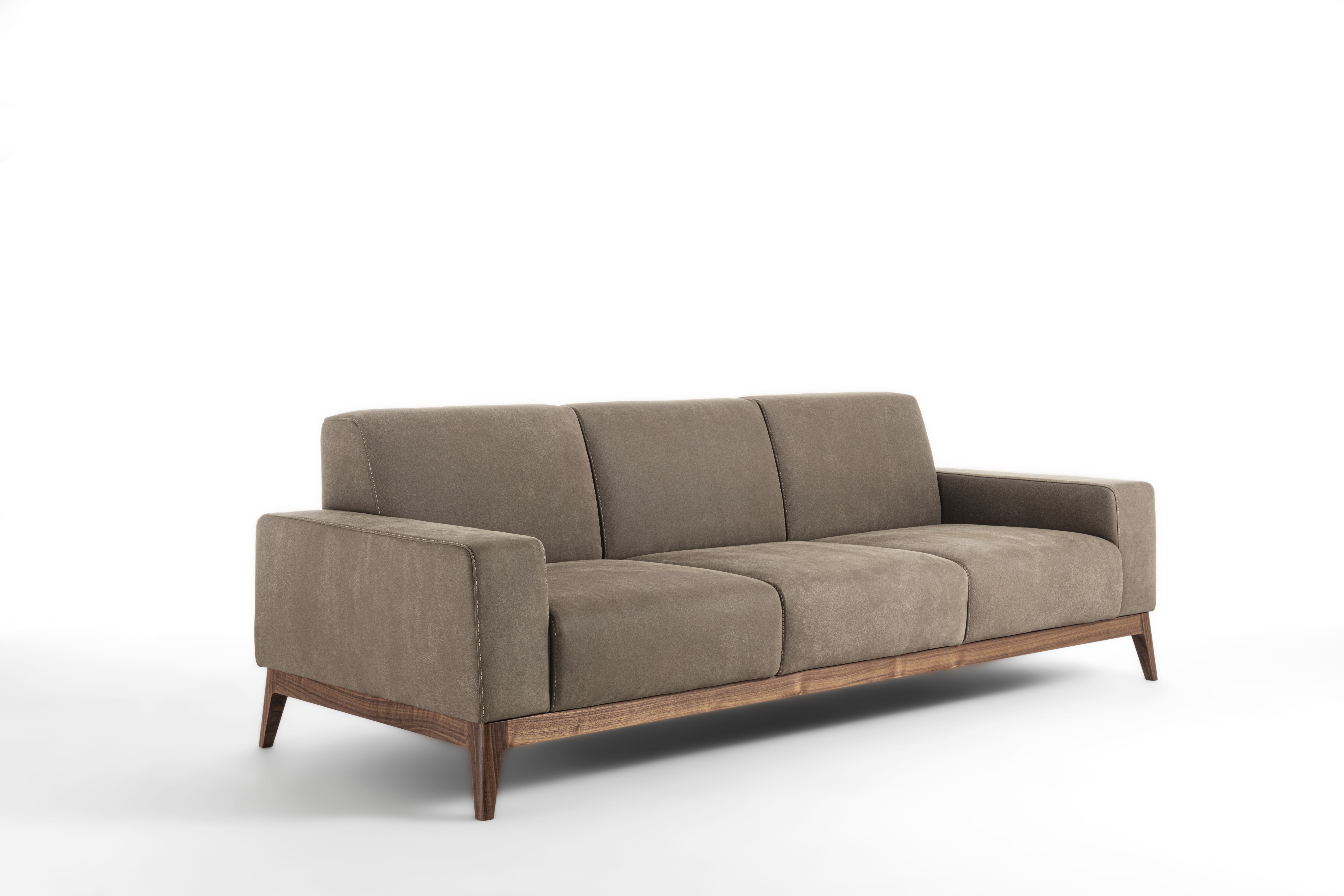 Sofa with solid wood base and padded structure with the possibility of having padded armrests or in wood and Vienna straw.