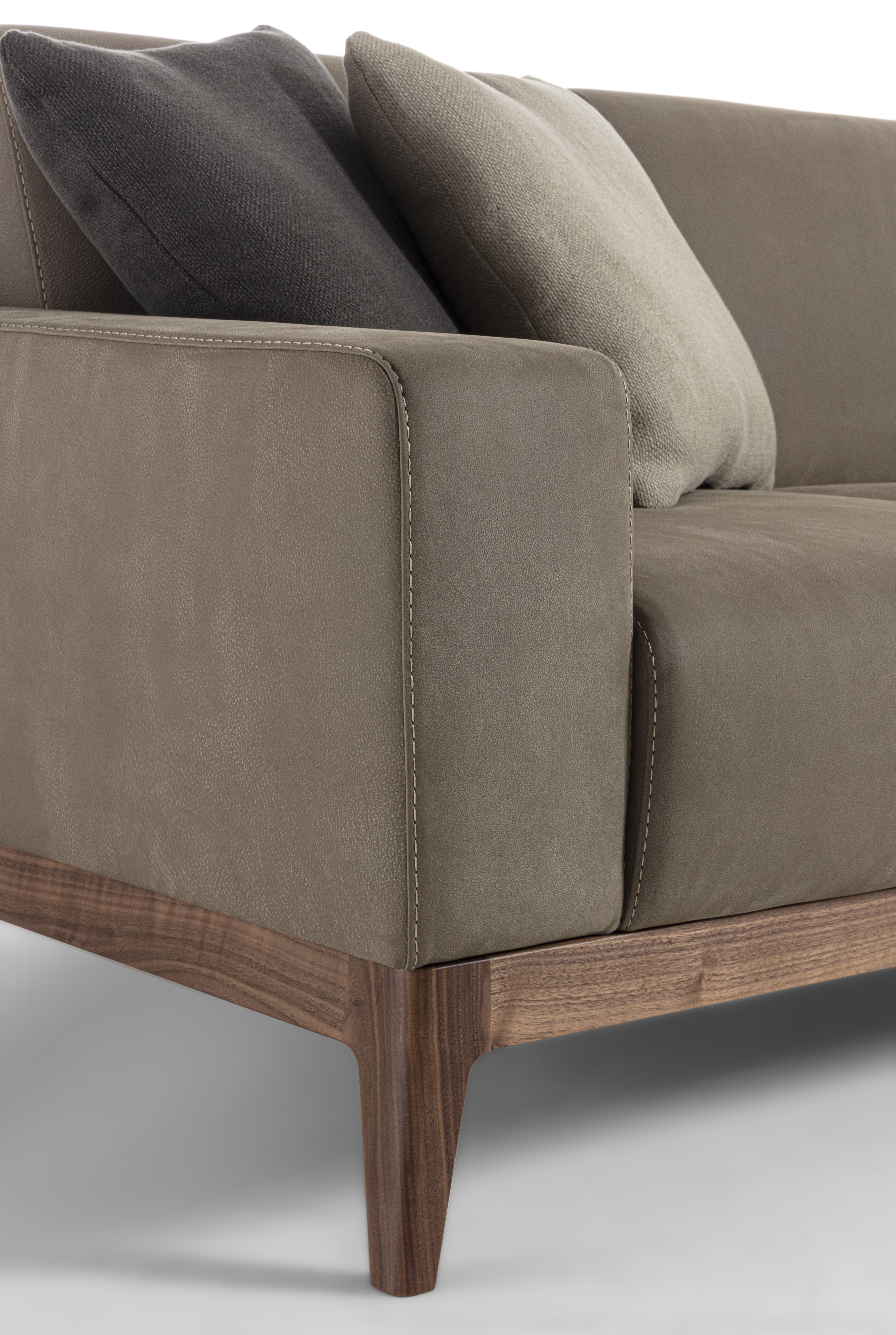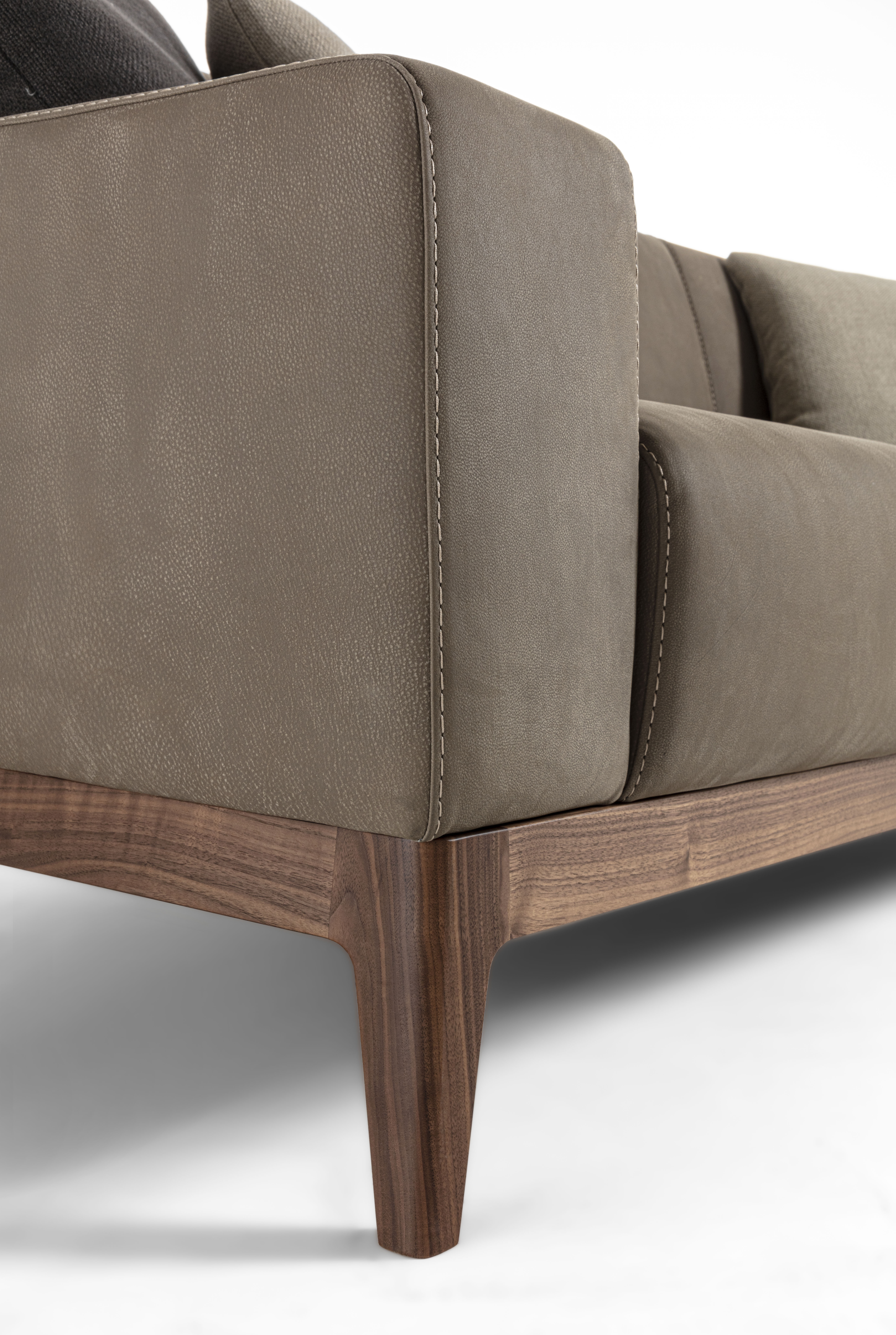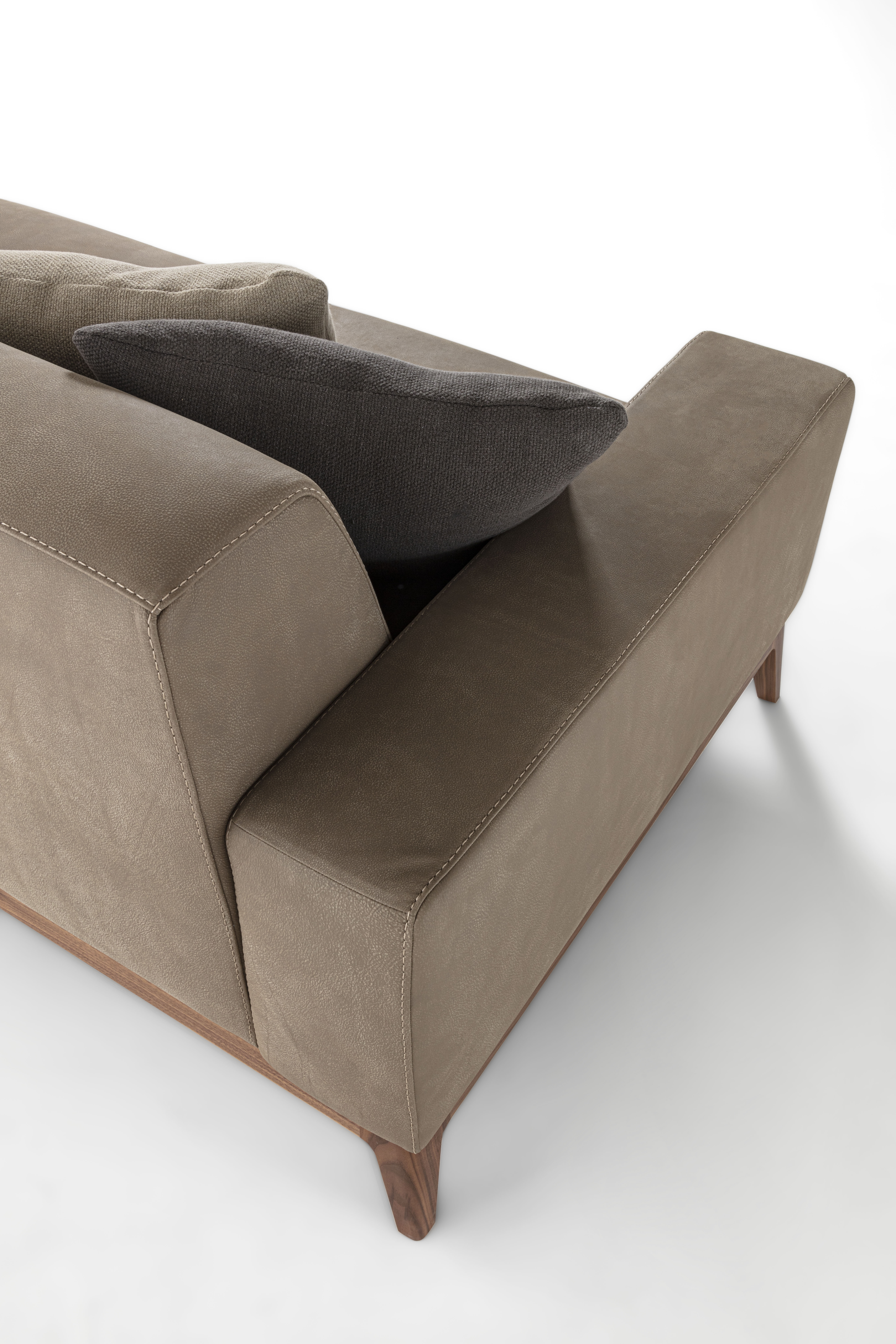 Sofa with solid wood base and padded structure with the possibility of having padded armrests or in wood and Vienna straw.