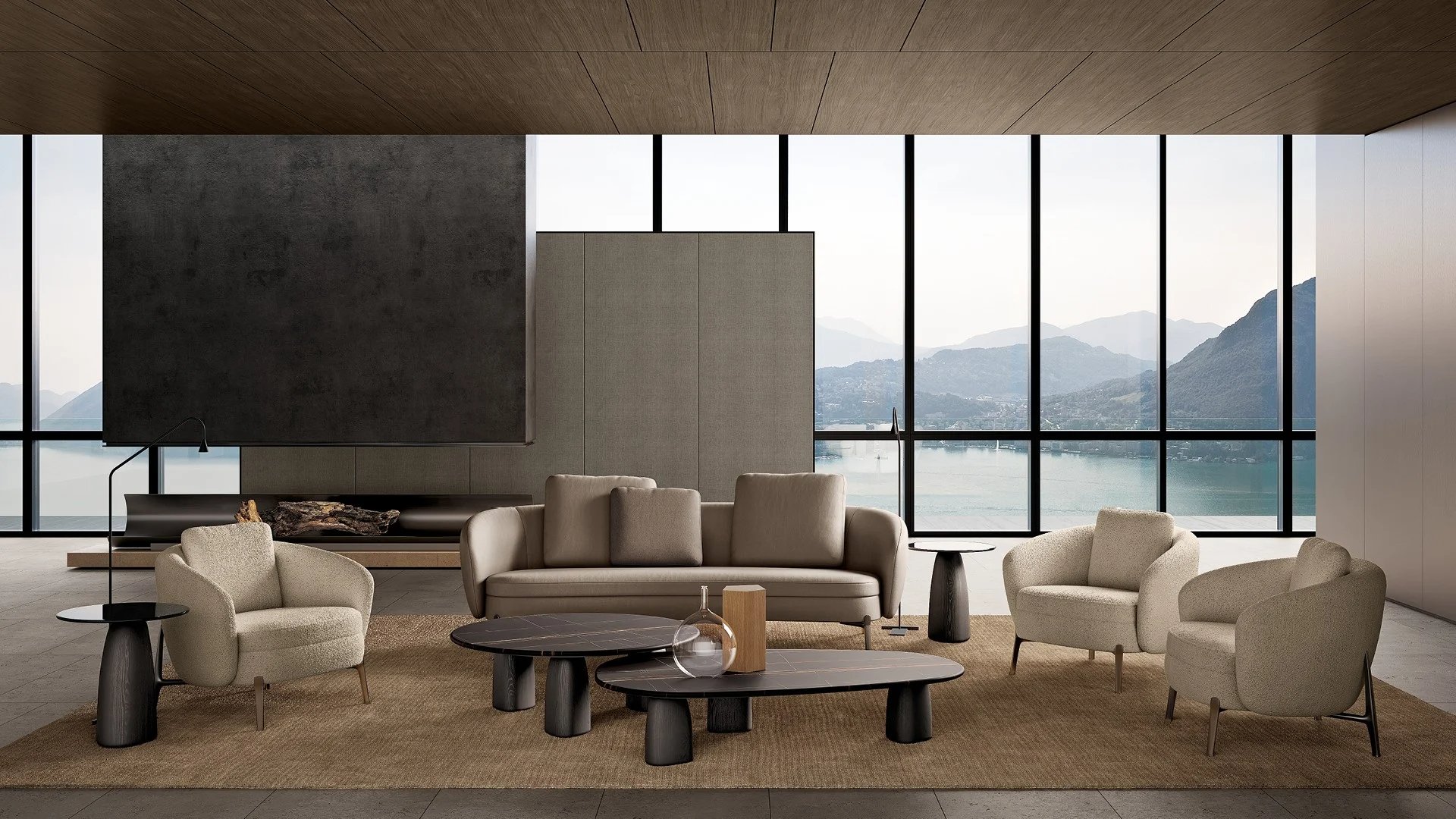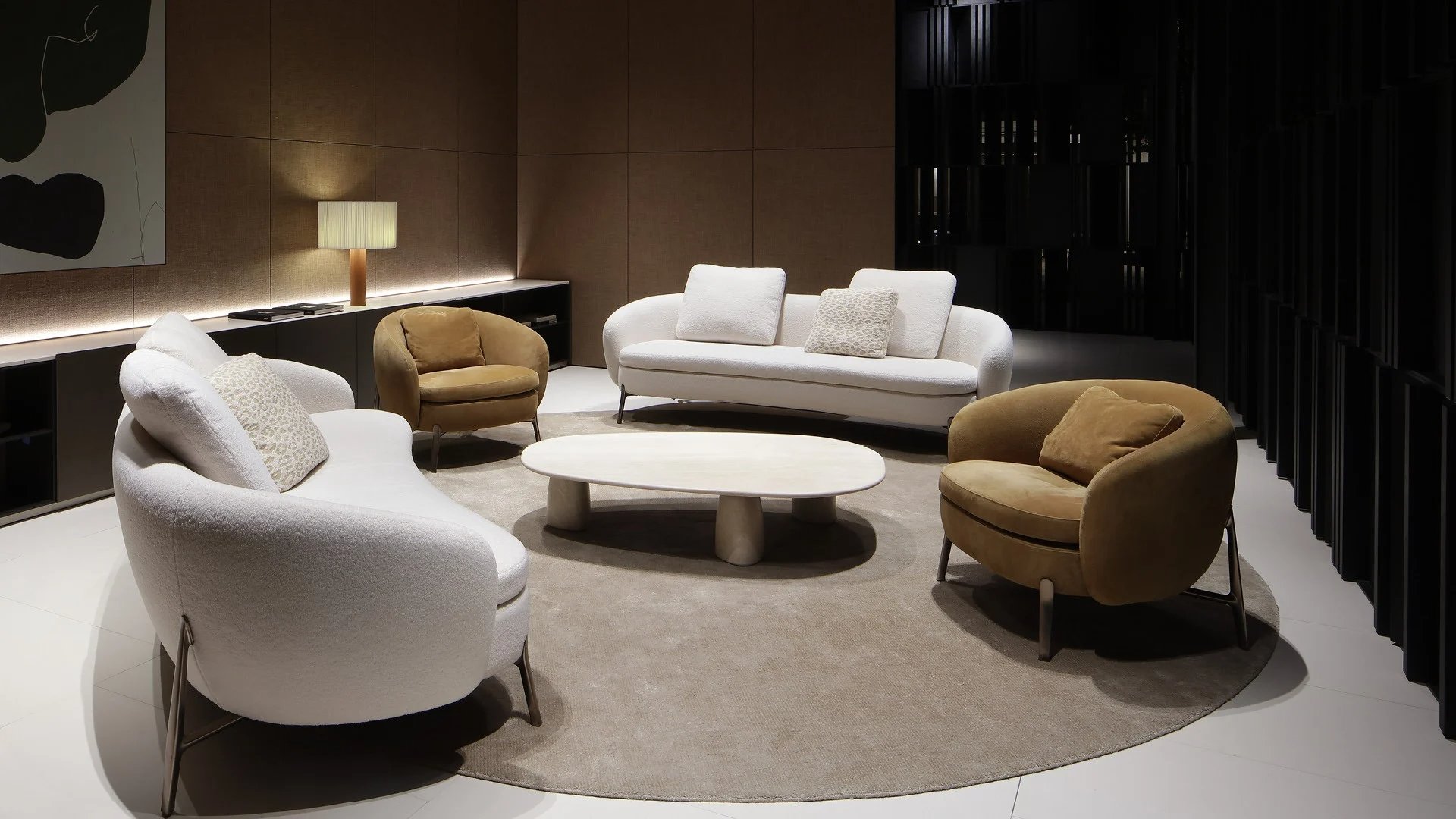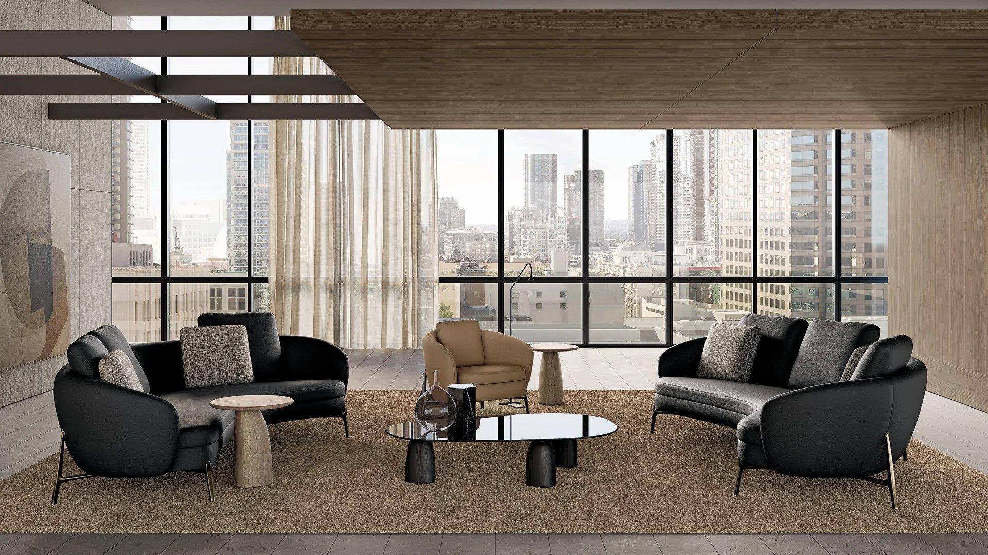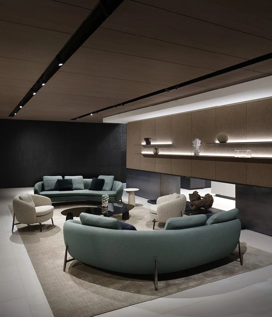 Orbis系列以其曲線線條和柔和外形,在客廳中營(yíng)造出一個(gè)親密而溫馨的空間。其沙發(fā)標(biāo)志性特征在于環(huán)抱式的靠背設(shè)計(jì),將時(shí)尚設(shè)計(jì)理念與當(dāng)代工藝完美交融。座椅配備纖細(xì)的椅腳,其設(shè)計(jì)靈感源自珠寶制作工藝,不僅增強(qiáng)了坐感的舒適性,更促進(jìn)了人際間的親密交談。
