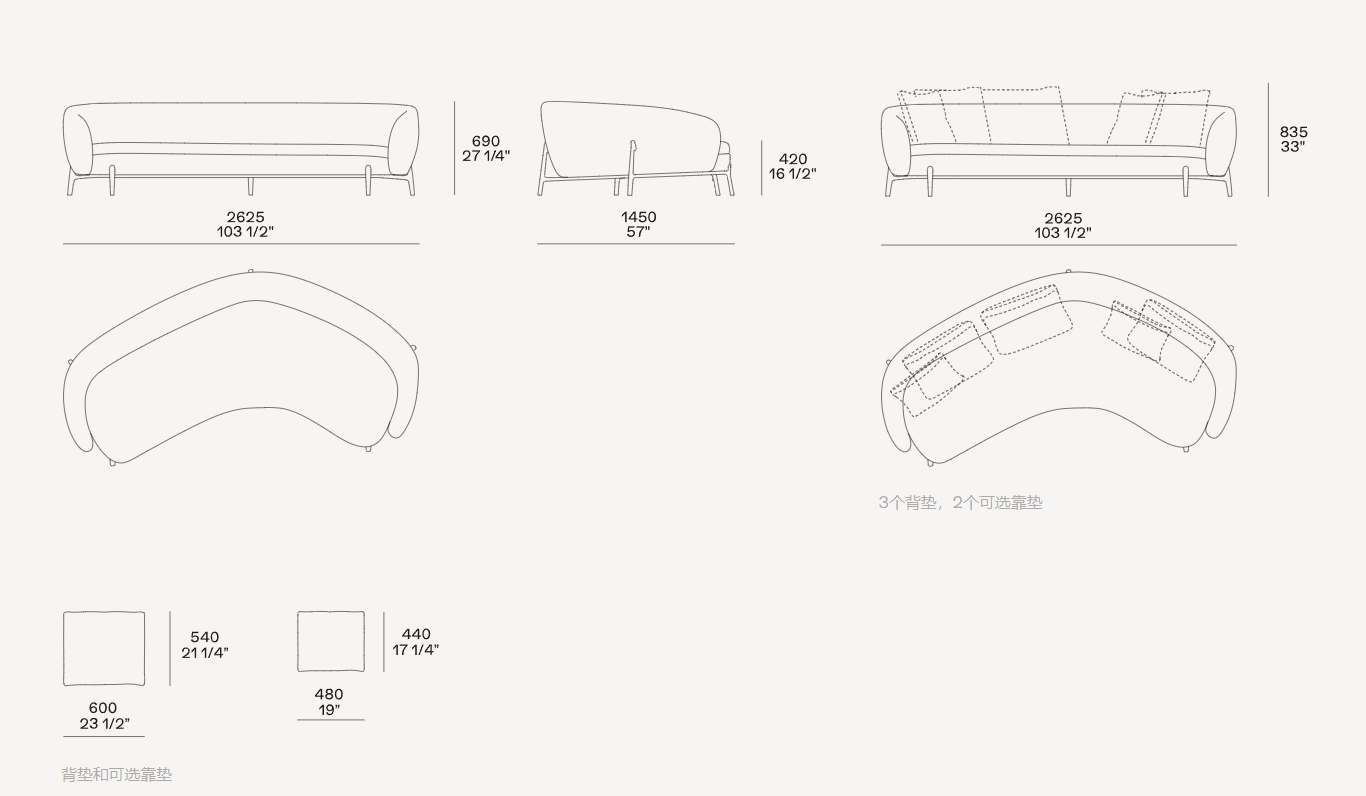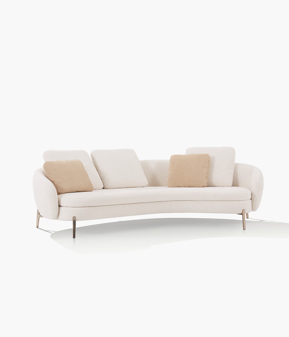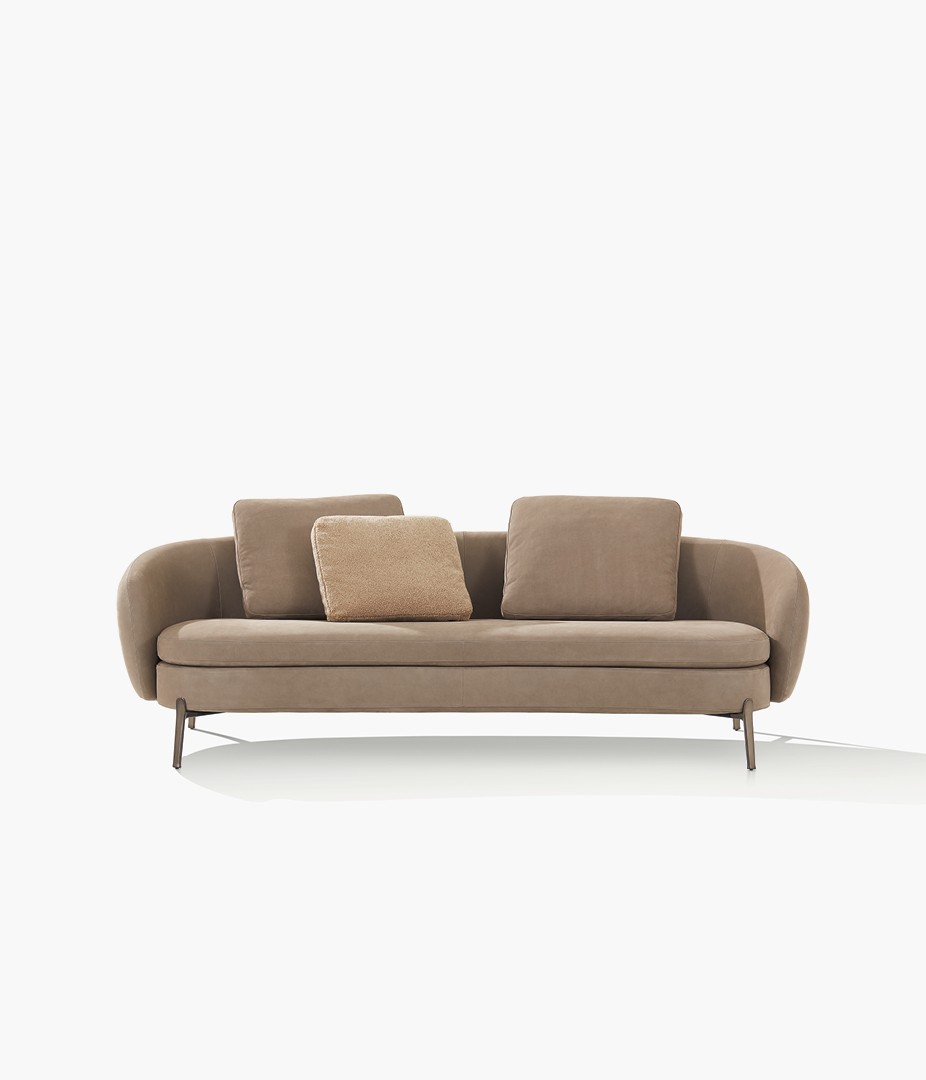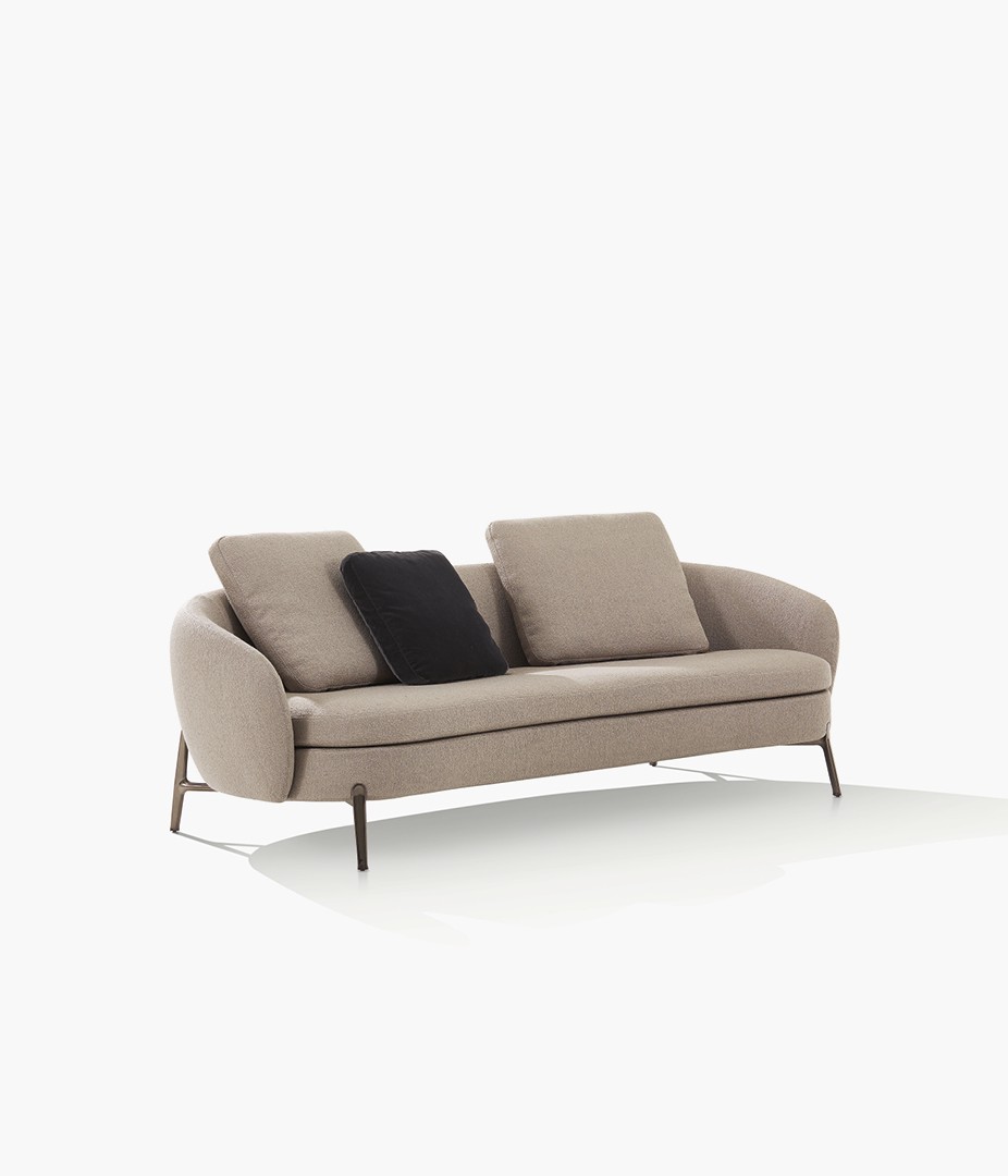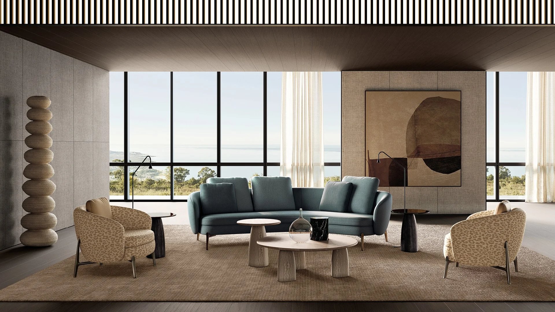 Orbis系列以其曲線線條和柔和外形,在客廳中營(yíng)造出一個(gè)親密而溫馨的空間。其沙發(fā)標(biāo)志性特征在于環(huán)抱式的靠背設(shè)計(jì),將時(shí)尚設(shè)計(jì)理念與當(dāng)代工藝完美交融。座椅配備纖細(xì)的椅腳,其設(shè)計(jì)靈感源自珠寶制作工藝,不僅增強(qiáng)了坐感的舒適性,更促進(jìn)了人際間的親密交談。