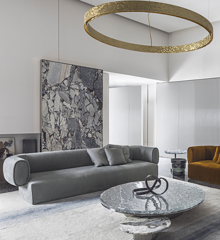 Sofa Hug is characterized by a seat enveloped by a rounded back. The collection includes also armchairs and poufs where everyone can feel the sensation of being hugged and it is available both in leather and fabric upholstery.