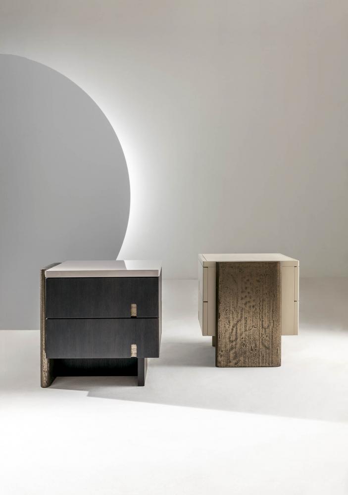 Bedside tables equipped with two drawers and the iconic Outfit legs.