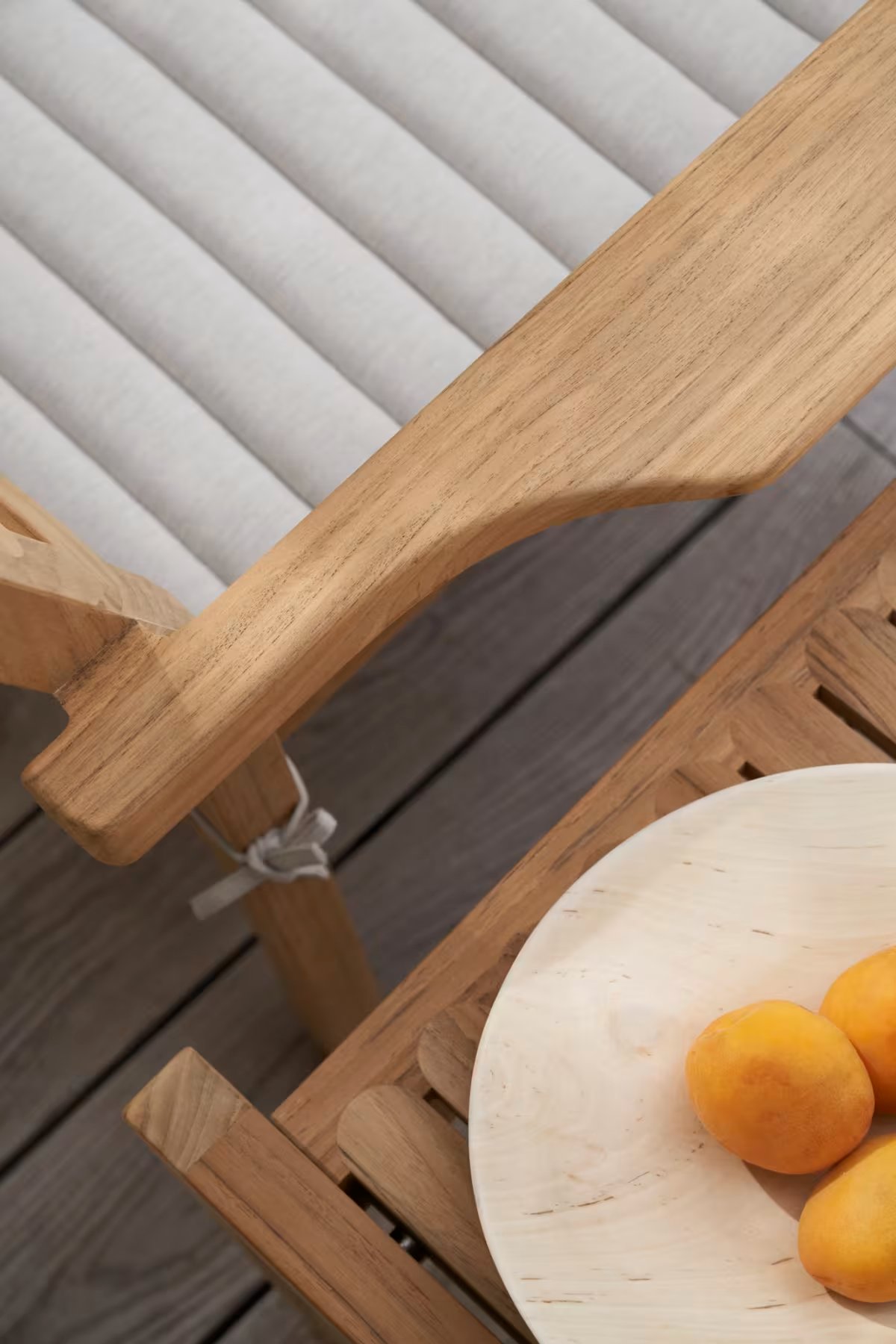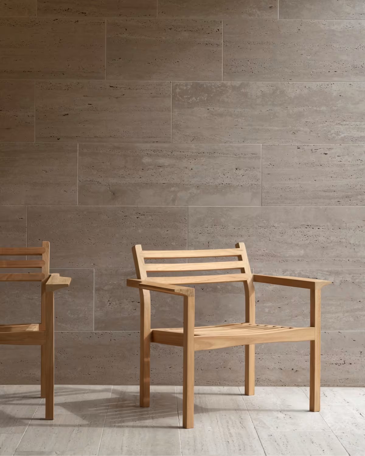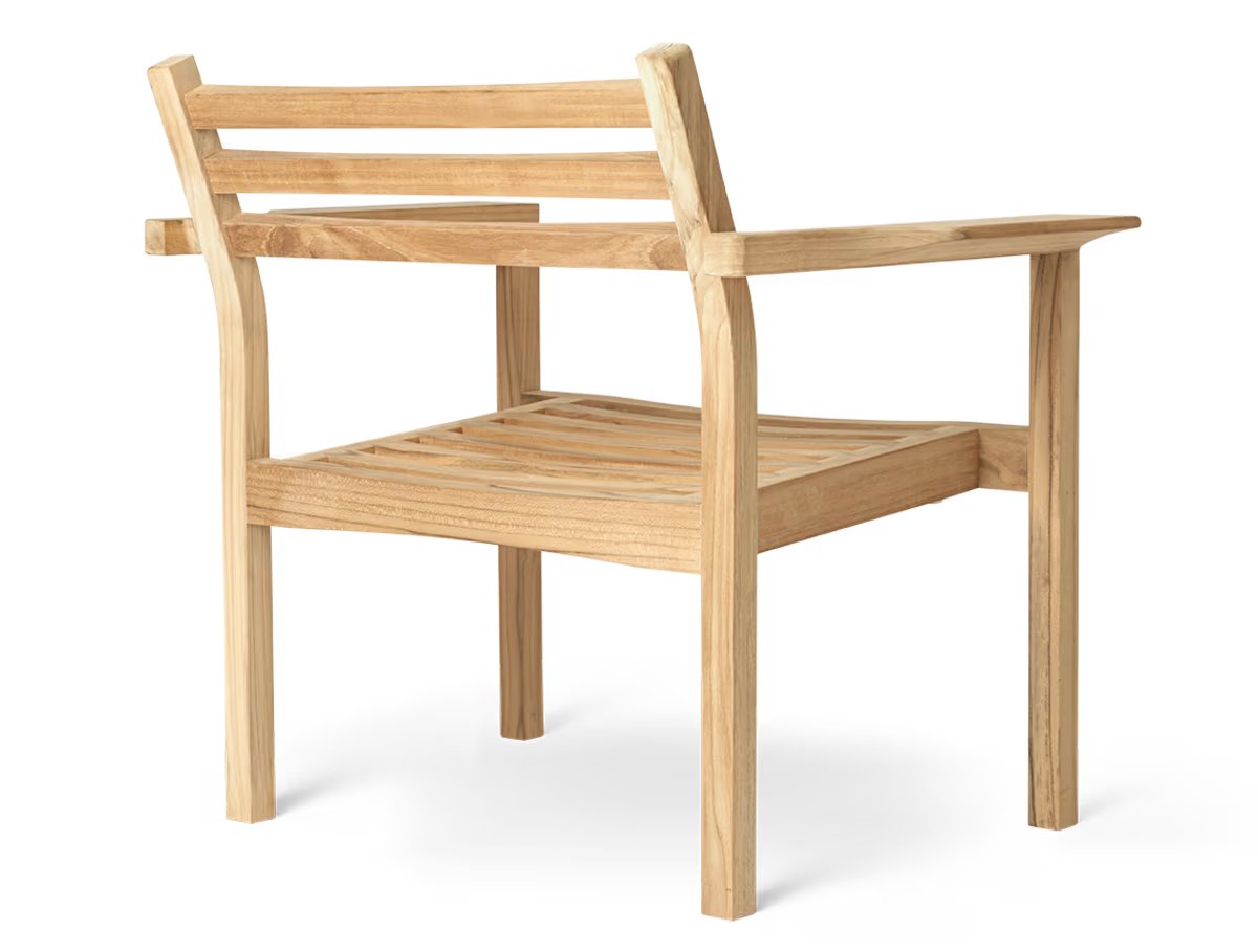 The AH601 Outdoor Lounge chair was designed by Alfred Homann in 2022 as part of the AH Outdoor series. Like the rest of the outdoor furniture in the series, the lounge chair is characterized by strict lines elegantly combined with soft, rounded details. The chair is made of FSC?-certified teak, is stackable and can be combined with other furniture from the series to create an atmospheric outdoor environment. Cushions sold separately.