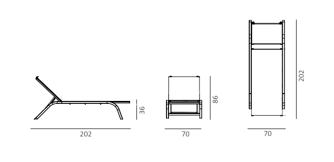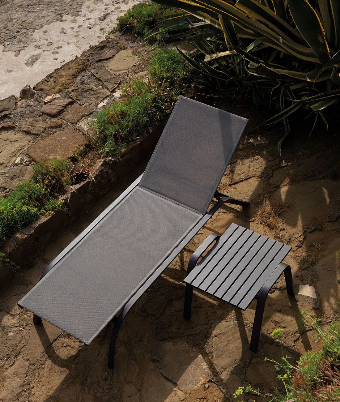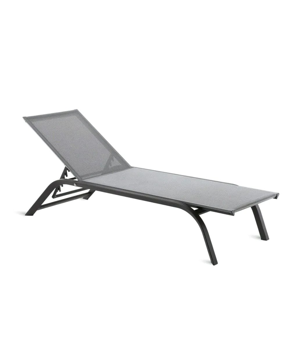 ll lettino è realizzato in alluminio con un tessuto tecnico che unisce la resistenza del PVC alla morbidezza della trama composta da ciniglia di poliestere. Disponibile nei colori grafite e bianco