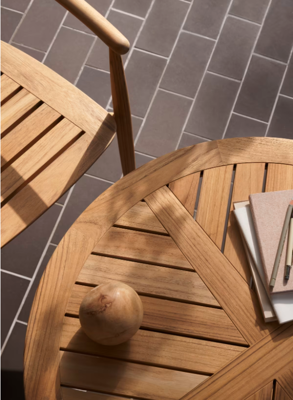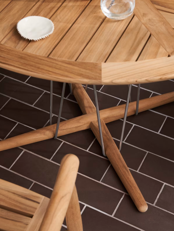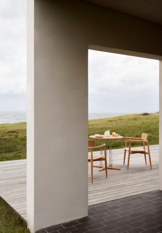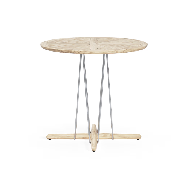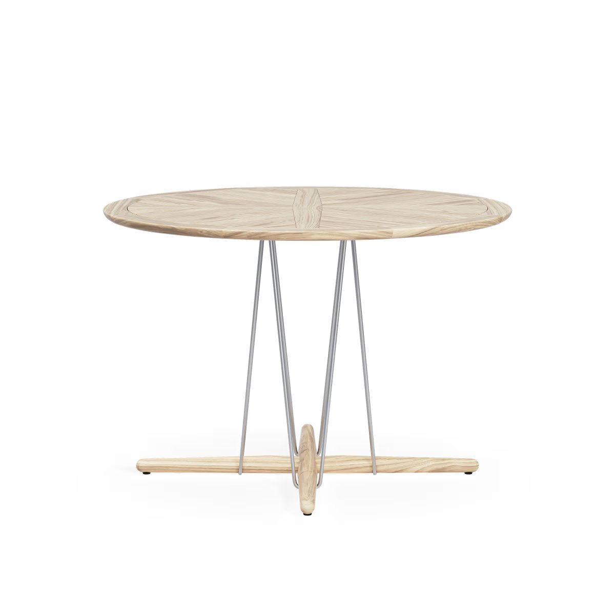 Extending the contemporary Embrace Series for Carl Hansen & S?n, the design trio EOOS presents the E022 Embrace Outdoor Dining Table. The round table in untreated teak seamlessly continues the silhouette of the indoor Embrace Series. The contrast between a sturdy steel wire suspension and a solid wood base and tabletop gives it a dynamic expression that brings the comfort of indoors into the garden.?A medium (?110) and a large sized table (?140) are also available.