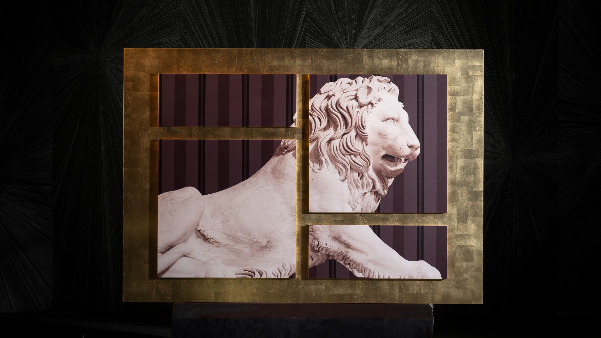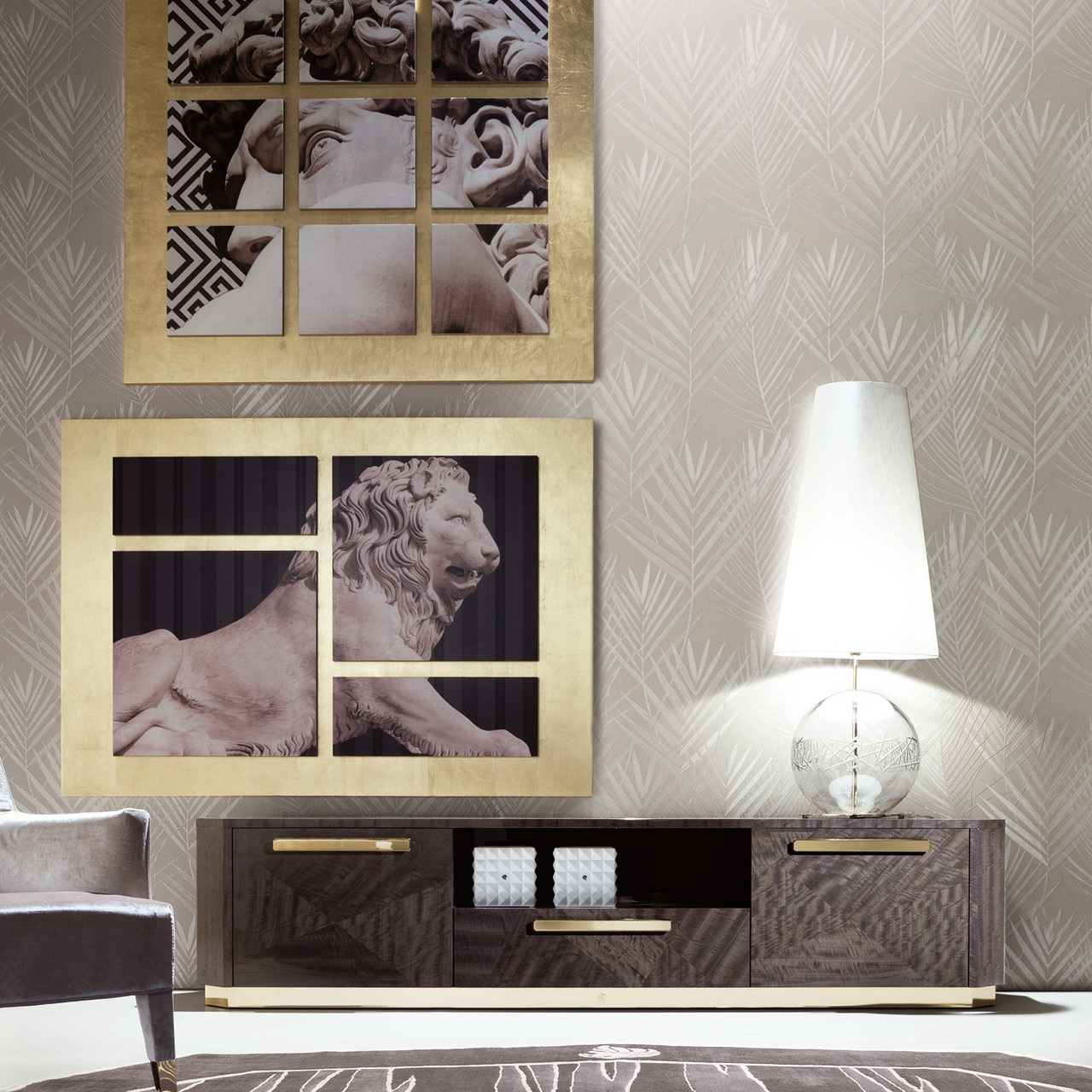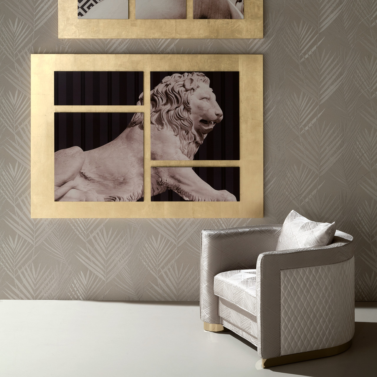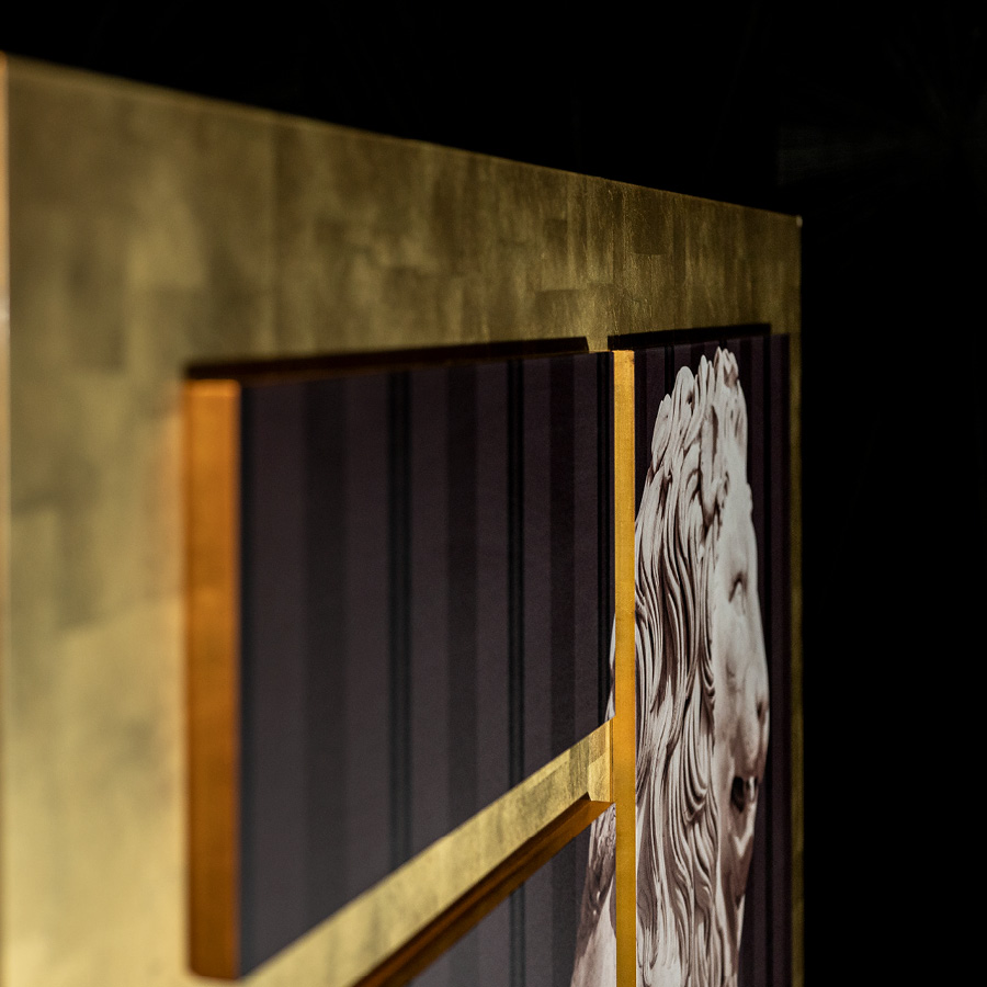 Woode panel in gold or silver leaf with 4 embossed panels. Custom made.