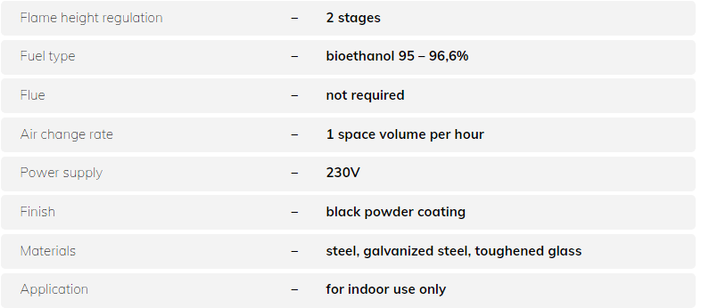 Neo Burner is an ethanol-fuelled product in Planika’s premium collection – an alternative for traditional wood-burning fireplaces. The dedicated casing allows to install the unit almost immediately. The safe usage of the burner is provided by different sensors and a microprocessor that monitors the combustion process all the time.