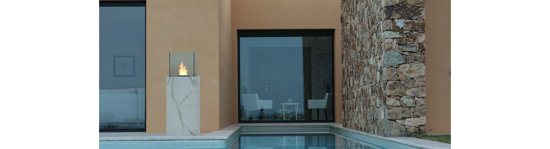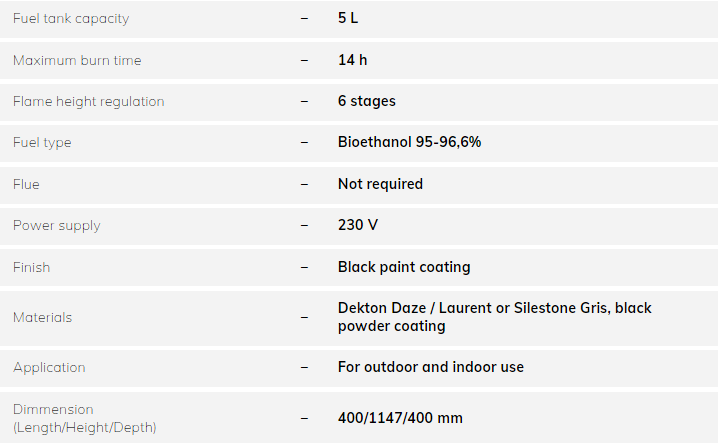 The very first BEV fireplace for outdoor usage. An alternative for gas fireplaces used in gardens, patios, hotels, or restaurants. Unconventional casing options from Cosentino – Daze, Laurent & Gris add a luxurious touch to the surroundings.