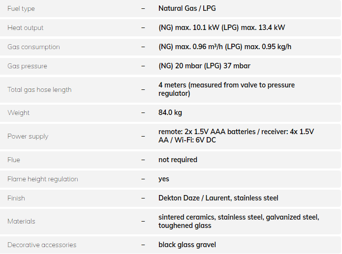 Transform Your Outdoor Space with Galaxy Table – The Ultimate Fire Table for Premium Designs! Enjoy the flexibility of portability with built-in wheels, move warmth & ambiance wherever you desire. Featuring a high-performance, 12mm Dekton sintered ceramic box that resists scratches, stains and high temperatures. Choose between LPG or Natural Gas and add a luxurious touch with our elegant stainless steel and black glass gravel finish. Upgrade your patio aesthetics now!