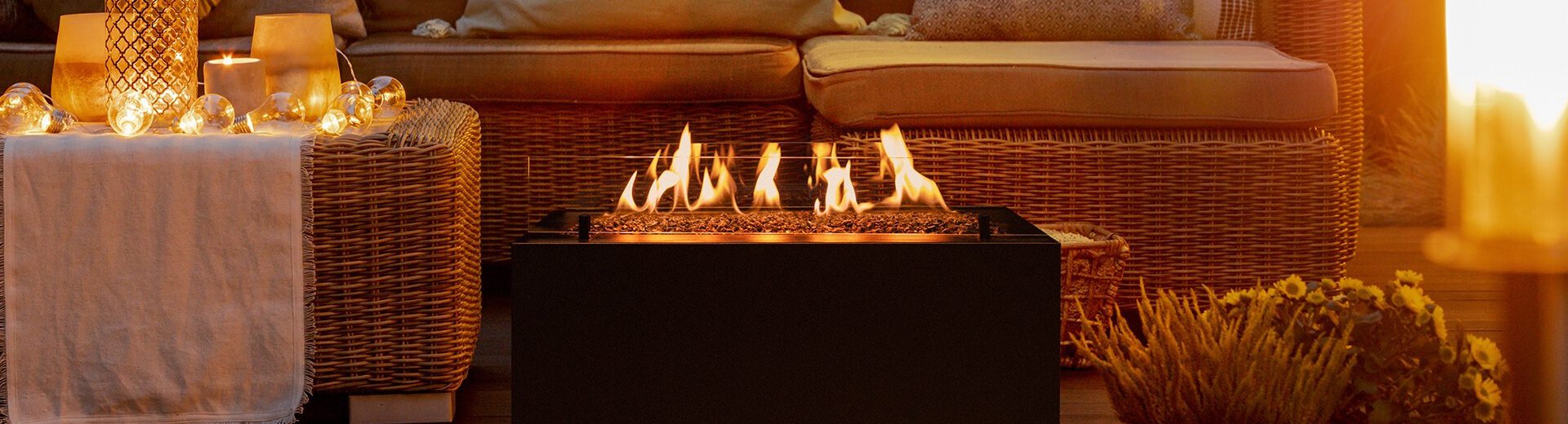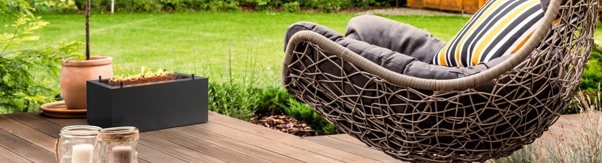 Rio is a black powder coat finish fireplace made of durable high quality materials, resistant to weather conditions. Enjoy the real golden flames up to 55 hours with this gas powered fireplace. Its small and compact size along with portable solution allows you to place it wherever you want on your terrace or around your garden. See-through glass panel stabilizes the fire and black glass gravels make an attractive addition.