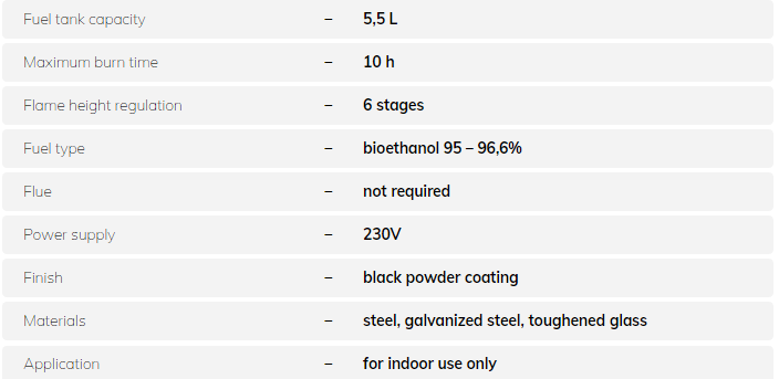 Panorama is the only ethanol BEV? fireplace that is fully closed behind tempered glass for most demanding clients who require extra protection combined with the Net Zero technology and comfort of use. With the base from our FLA3 system, it gives a fully automatic control with a remote, app or wall switch. Using BEV Technology? and burning only ethanol vapors it is efficient and safe. It comes in six shapes – all 1200 mm long. The heat is distributed through a vent below the ceiling. As in case of all our ethanol fireplaces, it does not require chimney and can be installed in houses where no other fireplaces can be placed.