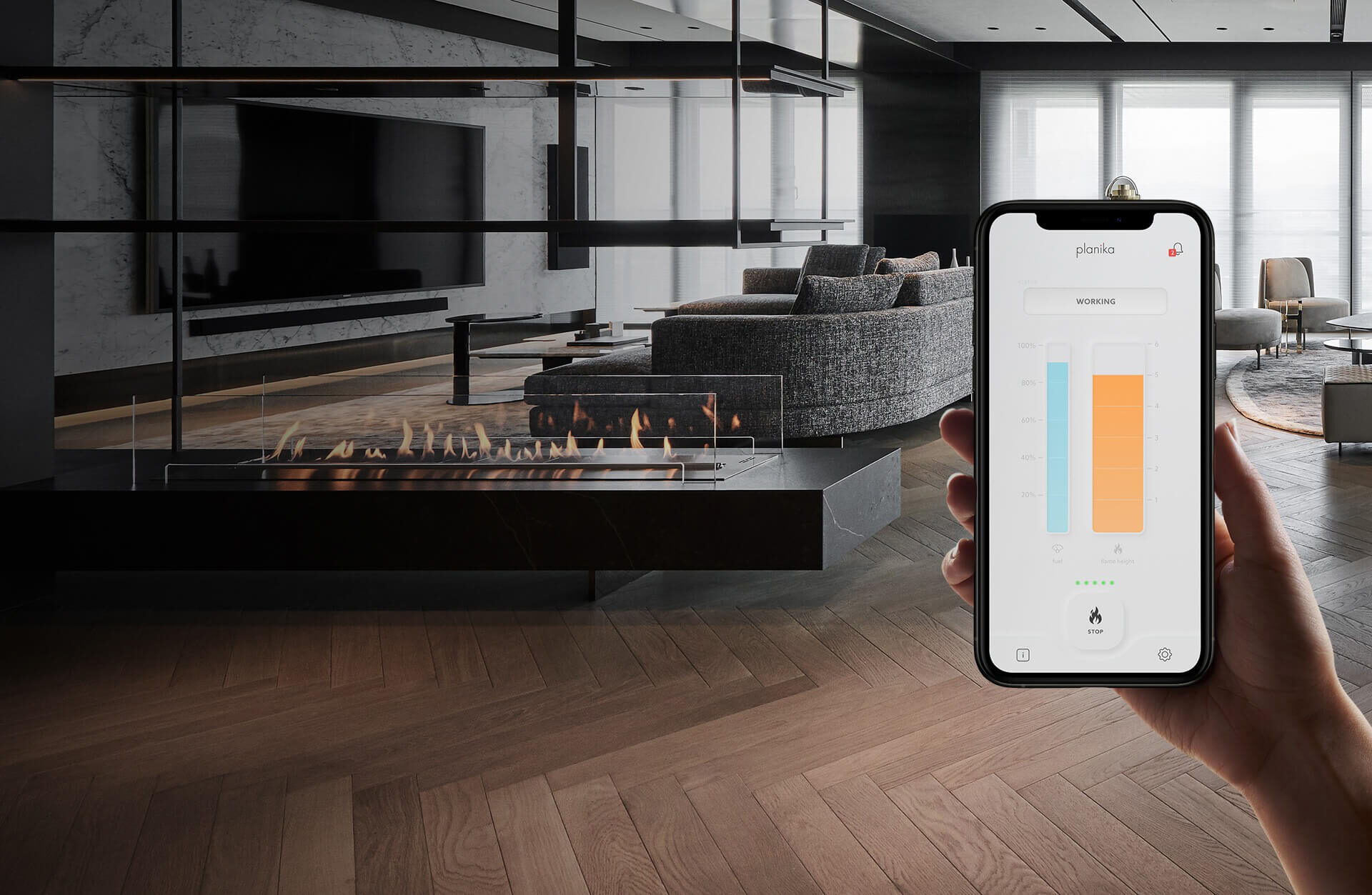 FLA3 is world’s first “intelligent fireplace” with paneted BEV (Burning Ethanol Vapours) Technology created by Planika enginners. This long fireplace insert comes with all state-of-the-art solutions like temperature, seismic and tilting sensors, wireless control and an automatic refuelling system. FLA3 is also avalible as FLA3+ – it provides same technological solutions with even more capacious tank. This fireplace can be easily customized to meet all individual needs of Planika clients.