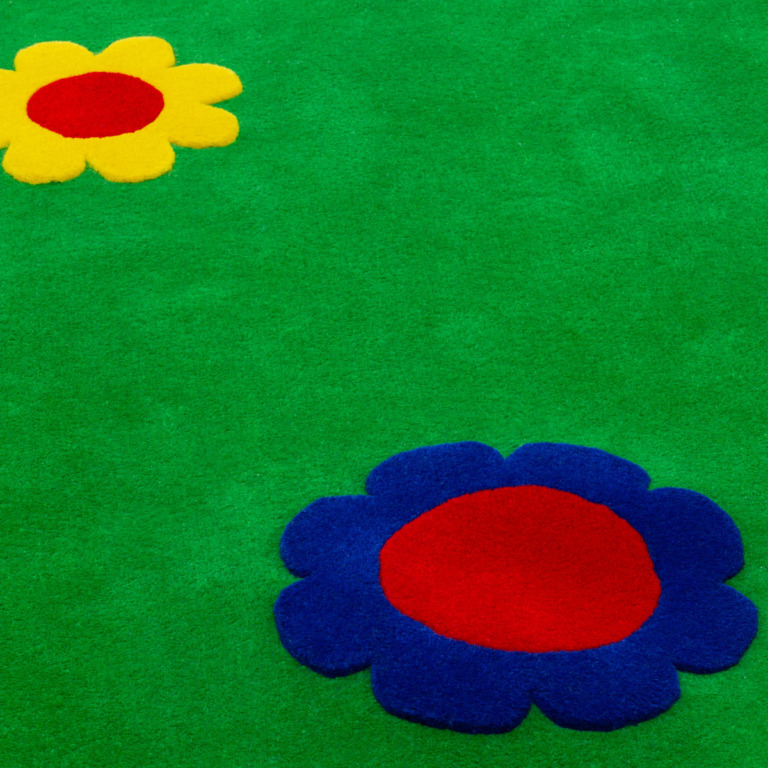 Farfalla, Prato and Cielo are the three rugs inspired by the Farfalla pattern designed by the Archizoom group in 1967 in their quest for an acid contrast between the floral, art nouveau decor and the experimentation that was taking place in Pop Art in those years.