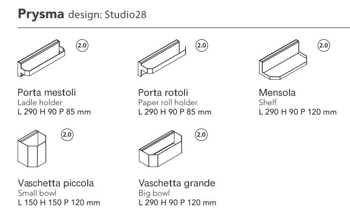 Collection of magnetic accessories dedicated to the kitchen environment, applicable on all metal supports. Some of them are also available with enhanced magnets (2.0) for