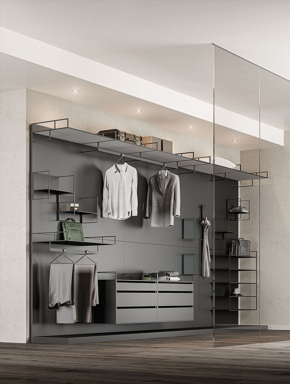 Caddy Wardrobe è la funzionale cabina armadio magnetica di Ronda Design, soluzione intelligente e d’effetto componibile in modo estremamente personalizzato secondo i gusti e le esigenze di ognuno, con un’efficienza valorizzata dalla costante possibilità di ampliare, riposizionare e modificare gli accessori e le loro disposizioni.