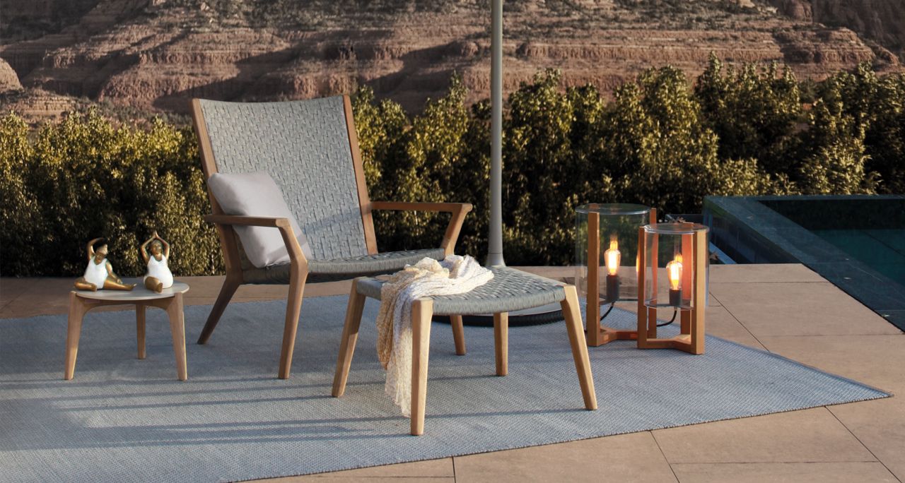 These soft sculptured structures have a handwoven seat and back in Olefin ribbons. QuickDry foam is used in both the seat and backrest, while the handwoven elements are made of moisture repellent materials.