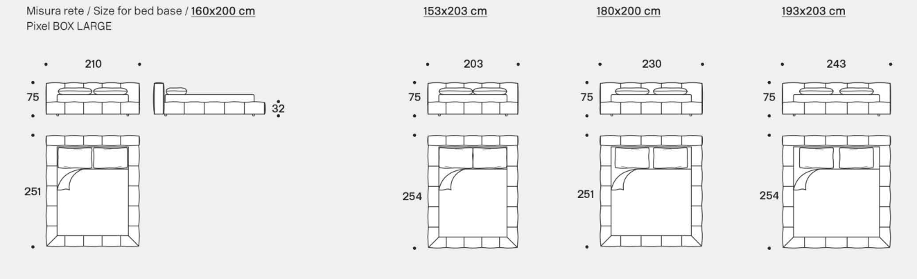 Pixel Box Large is the most voluminous option in the Pixel bed collection, completely enclosed by the soft and ample bed frame. Pixel Box Large most evidently recalls the iconic and generous rounded shapes of Saba’s Pixel sofa.