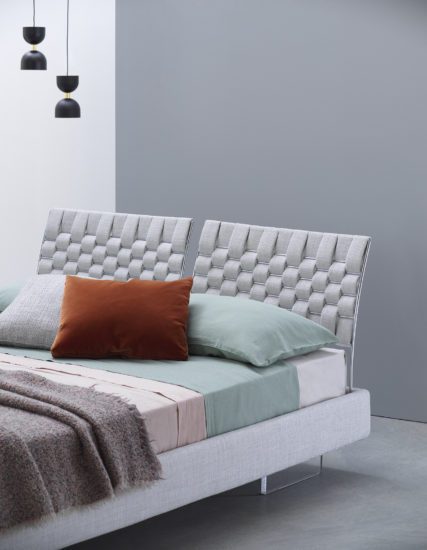 Limes T Large follows the same stylistic line of the Limes collection and is characterized by a functional integrated padded shelf, which depending on the panels positioning, can add an extra area to the headboard or footboard.